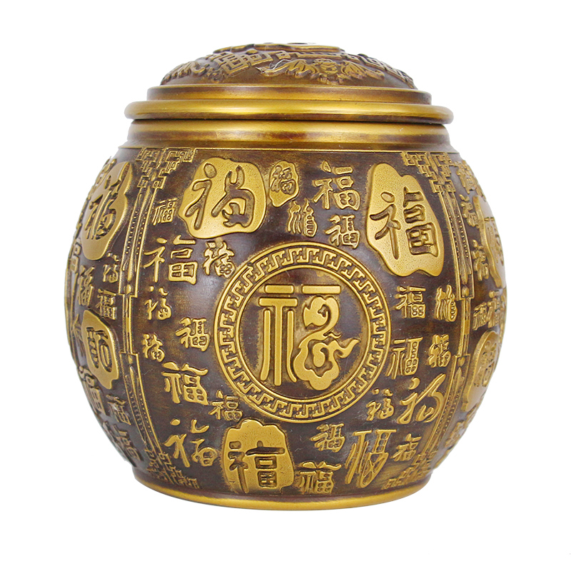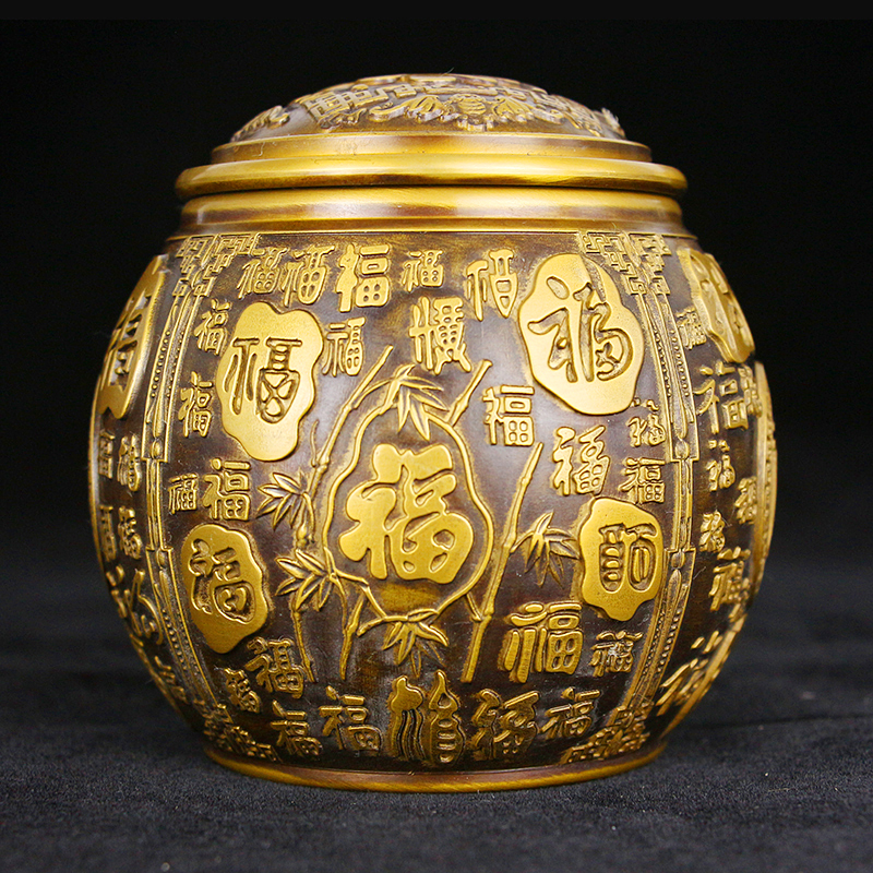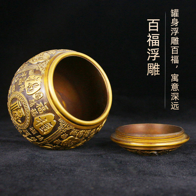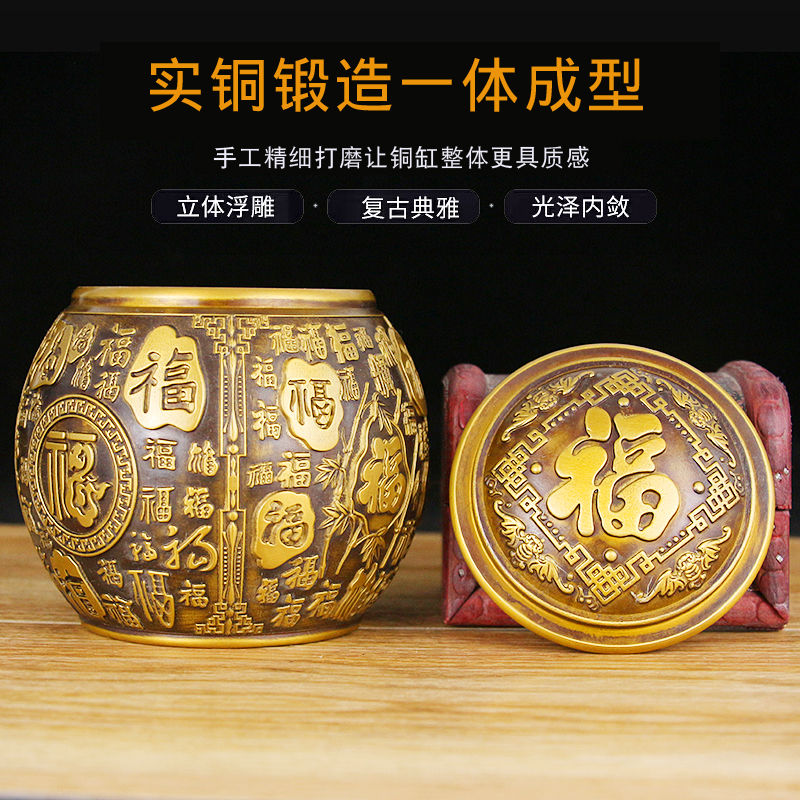 黄铜百福缸带盖黄铜米缸招財聚财聚G宝盆茶叶罐铜水缸存钱罐精致