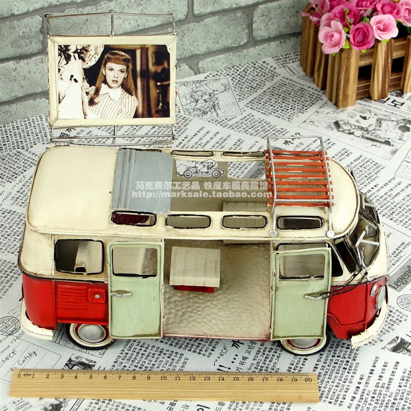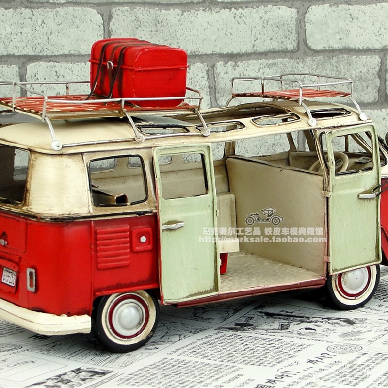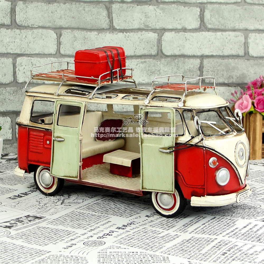 复古铁艺大众露营巴士铁皮车 房车旅行车模型金属装饰品家居摆设