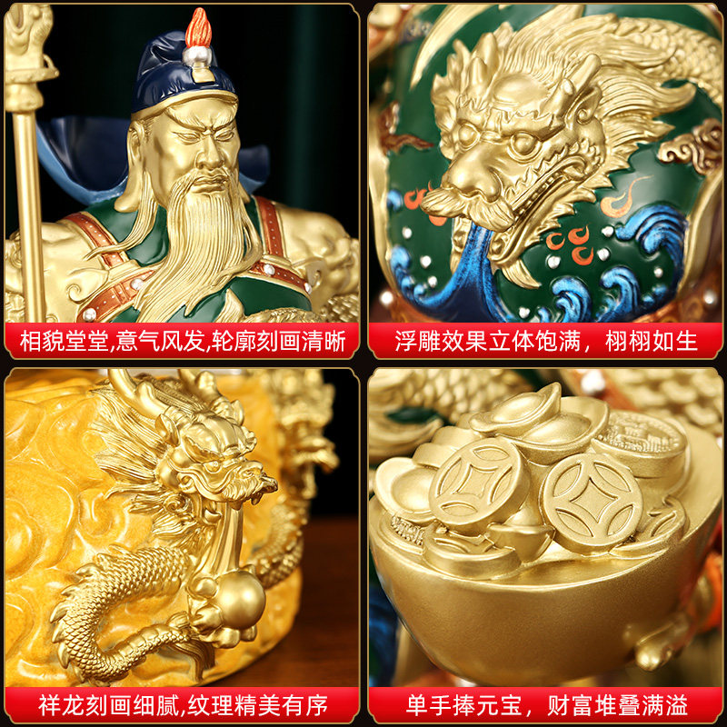 吉善缘 《九龙关公》铜关公关二爷神像摆件 武财神关羽佛像0639