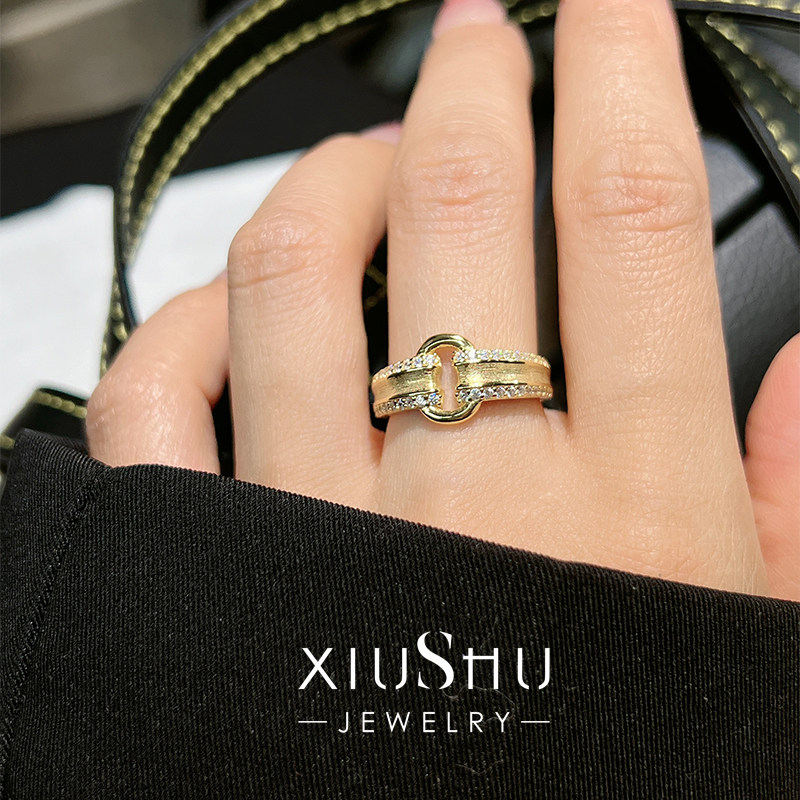 中古风金属拉丝925银戒指百搭锁扣元宝个性时尚气质百搭轻奢指环