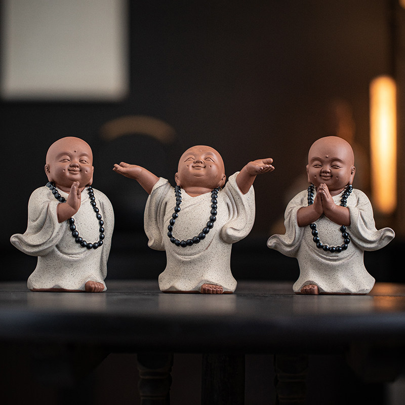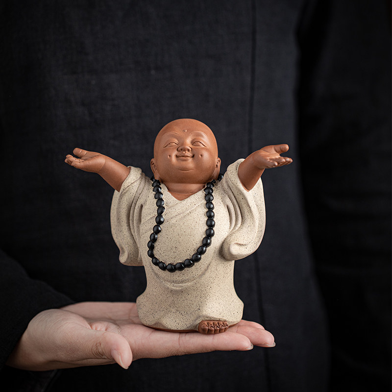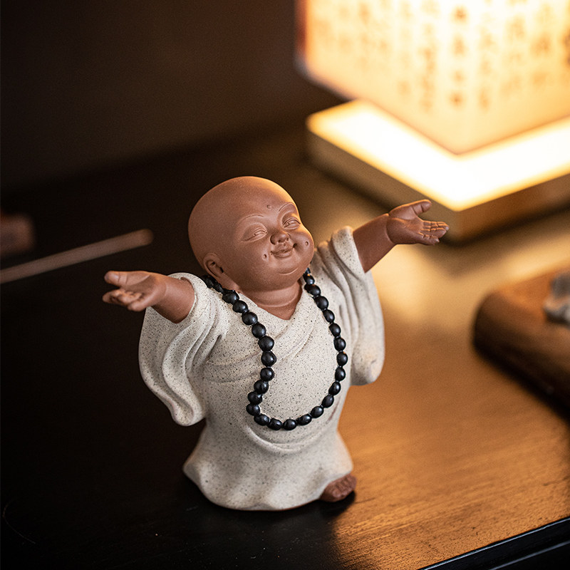 中式禅意可爱小和尚摆件紫砂创意家居客厅博古架装饰陶瓷人物摆设