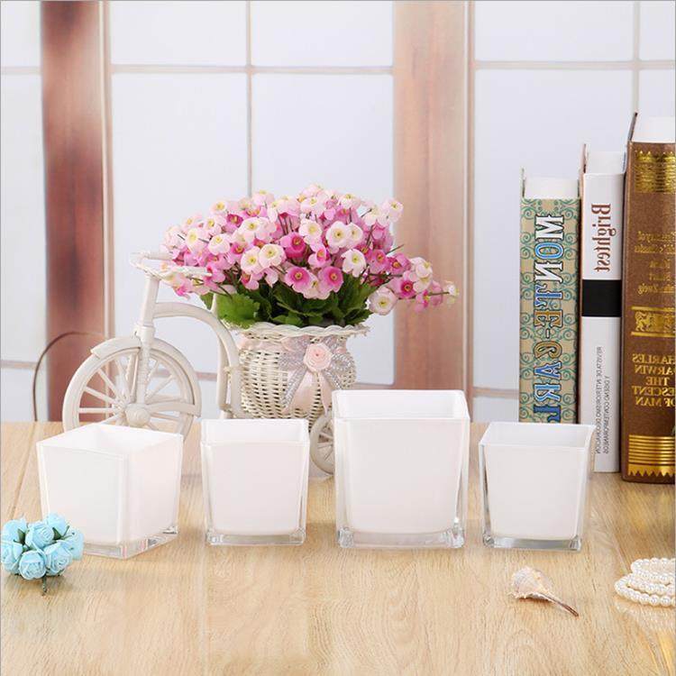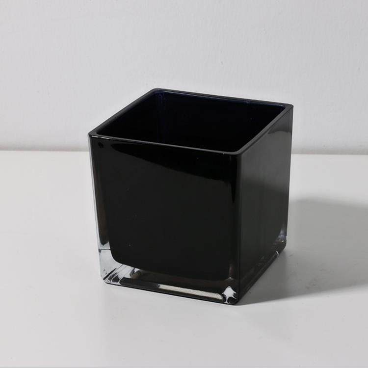 黑色白色电镀银色四方方形水培玻璃花瓶鱼缸厚款花瓶花店婚庆家居