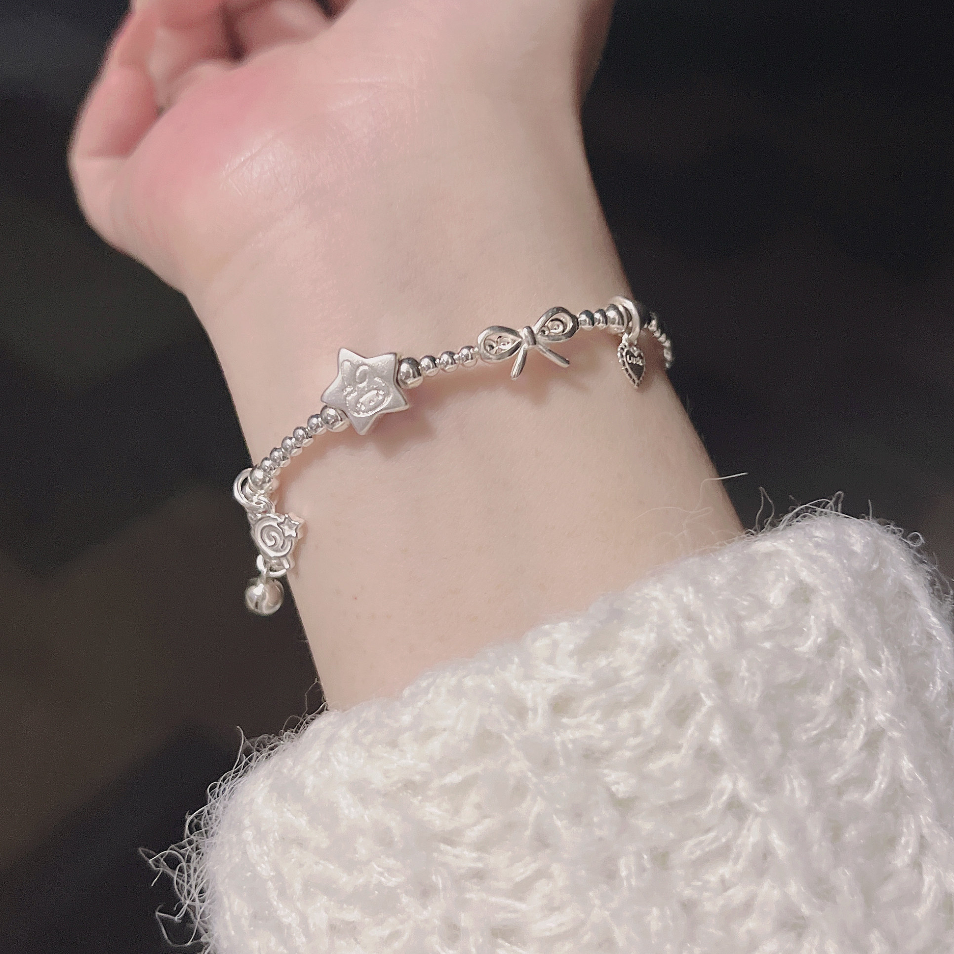纯银s925许愿星星兔美乐蒂女小众设计原创百搭手链手链可调节
