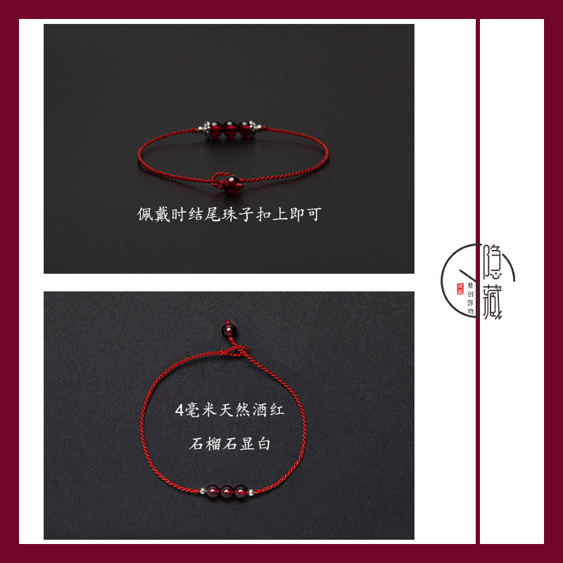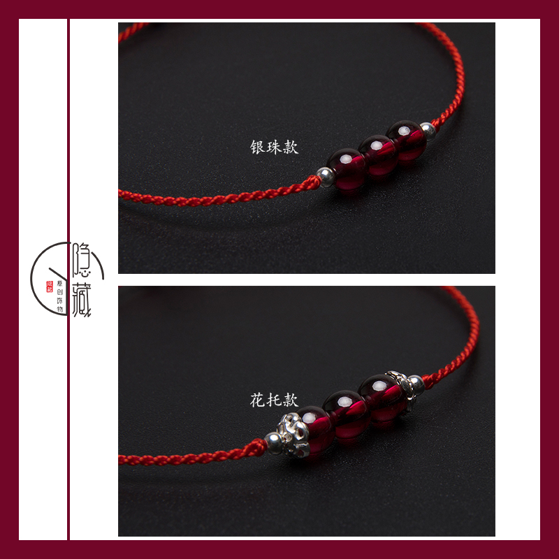 【隐藏·人间幸福】原创石榴石银极细编制手绳女闺蜜母女礼物红色