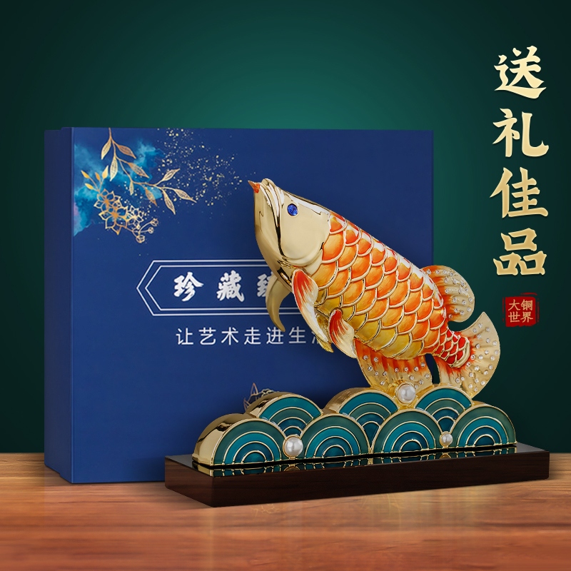 大铜世界纯铜金龙鱼摆件客厅书房玄关办公桌面装饰亲友送礼工艺品