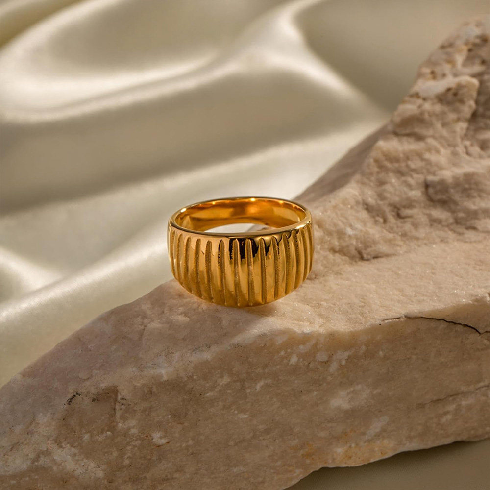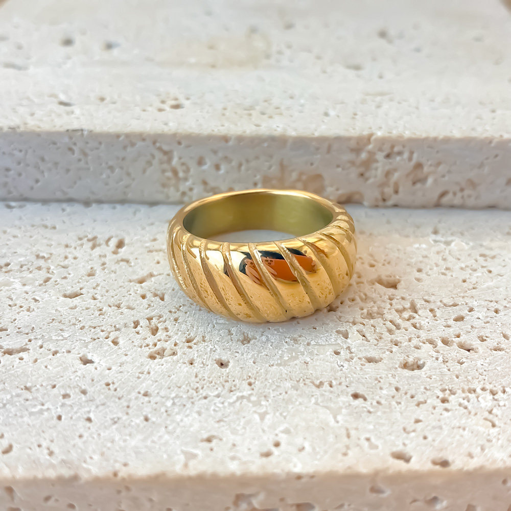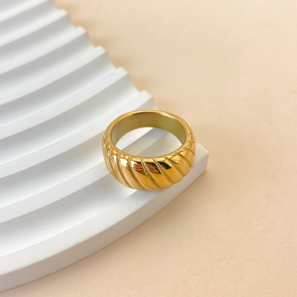 magic fish法式复古独特牛角包纹理个性设计钛钢指环女款电镀戒指