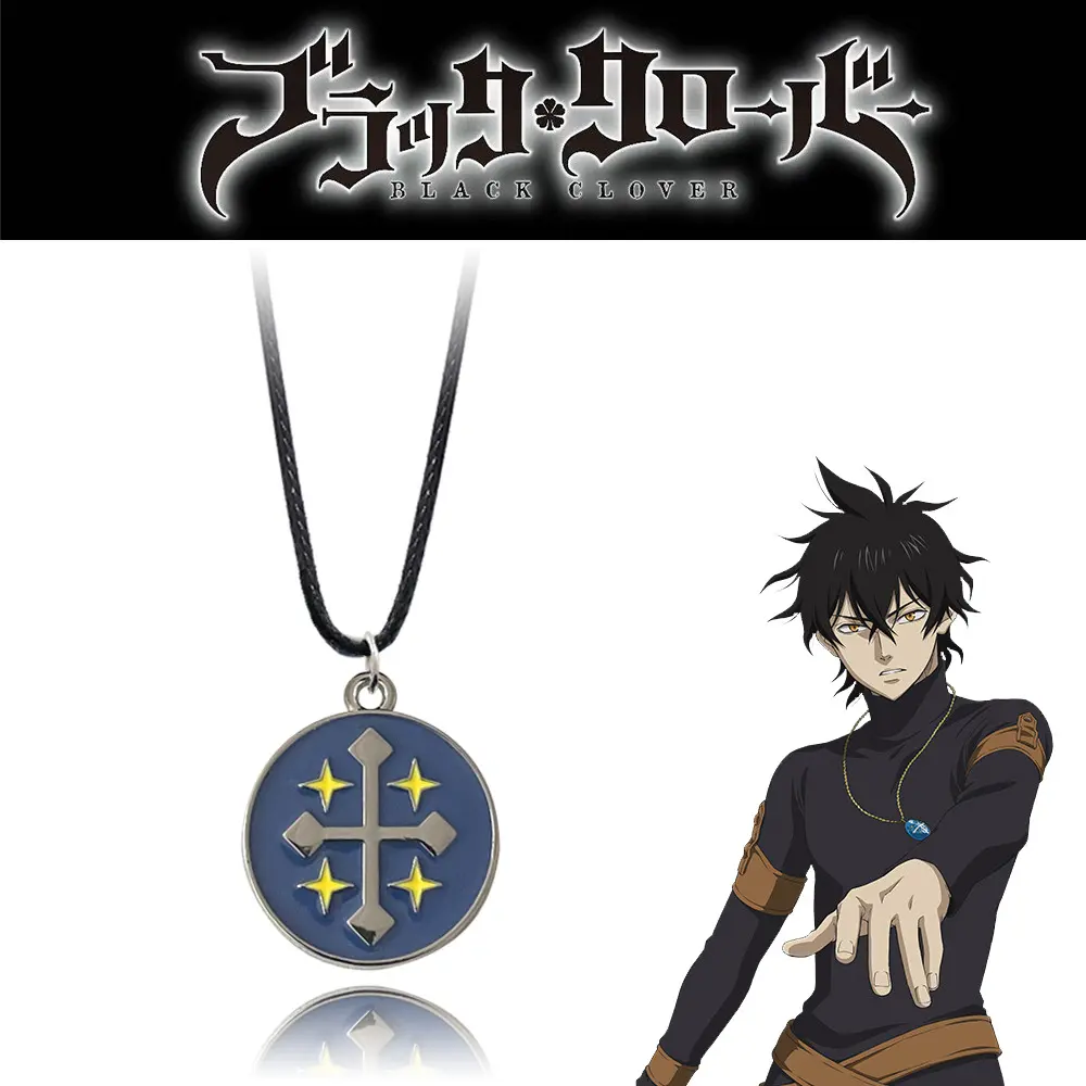 黑色的五魔石项链 动漫黑色四尤诺十字星星吊坠