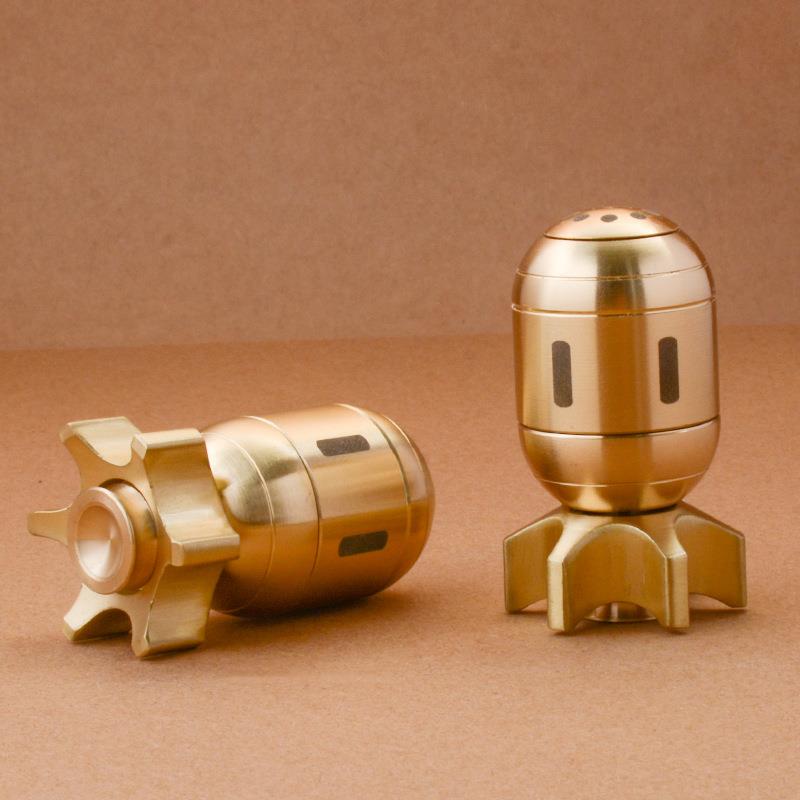 黄铜火箭鱼雷指尖陀螺手把件玩具解压发泄神器创意可旋转模型摆件