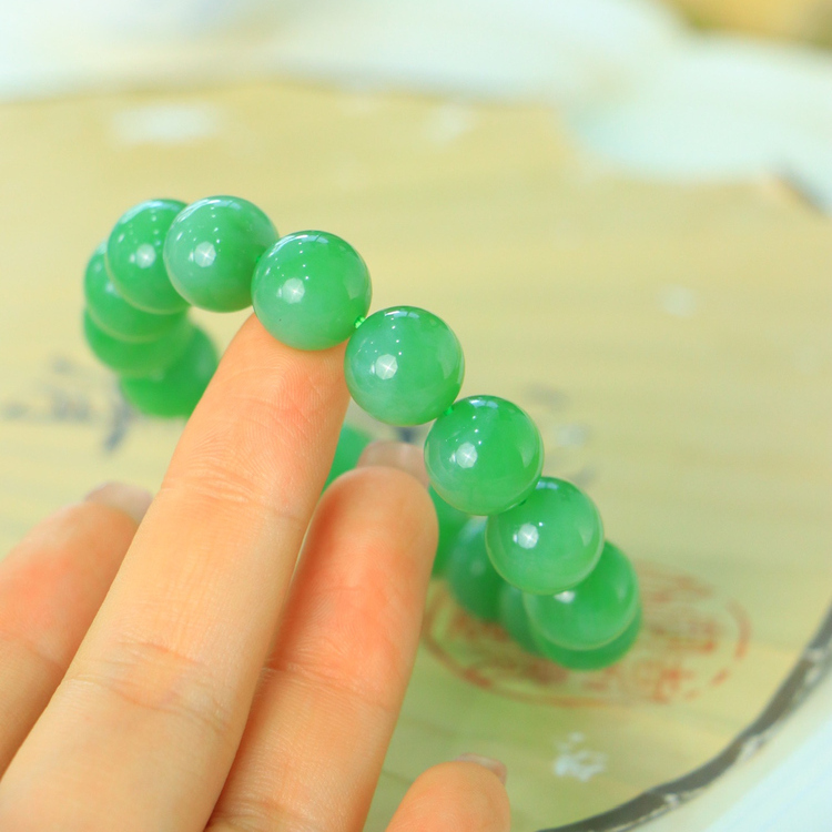 天然新疆和田玉俄罗斯老坑碧玉阳绿色12mm手串手链古风男女手饰