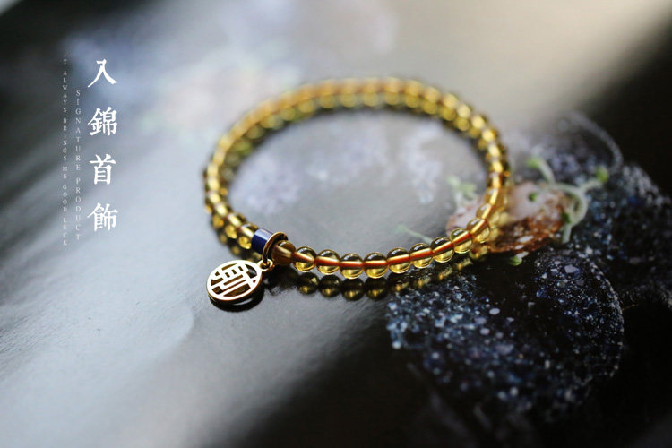 财气丨优质黄水晶青金石财字小坠细手链 十一月生辰石
