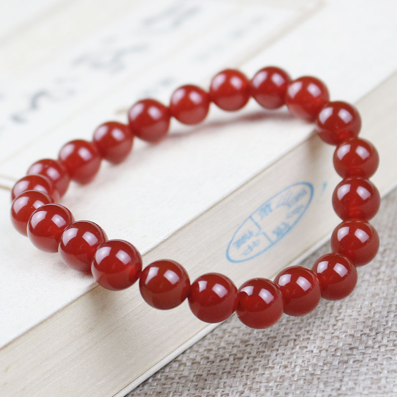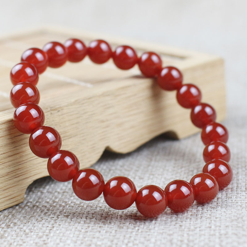厂家批发红玛瑙手串8MM红色本命年饰品单圈男女情侣手链时尚简约