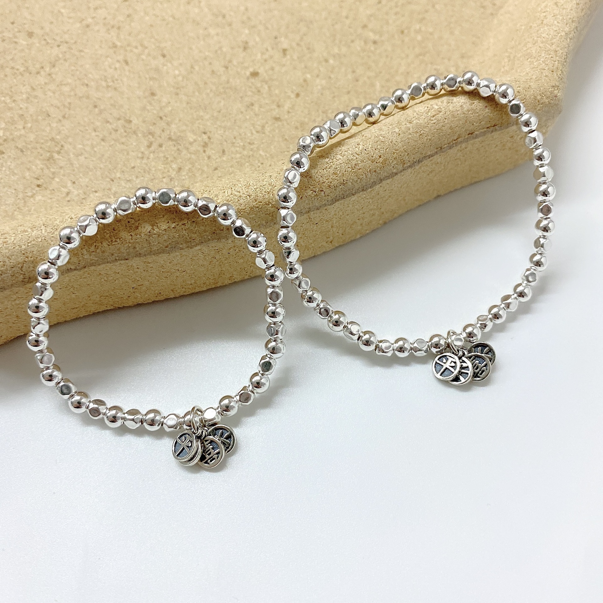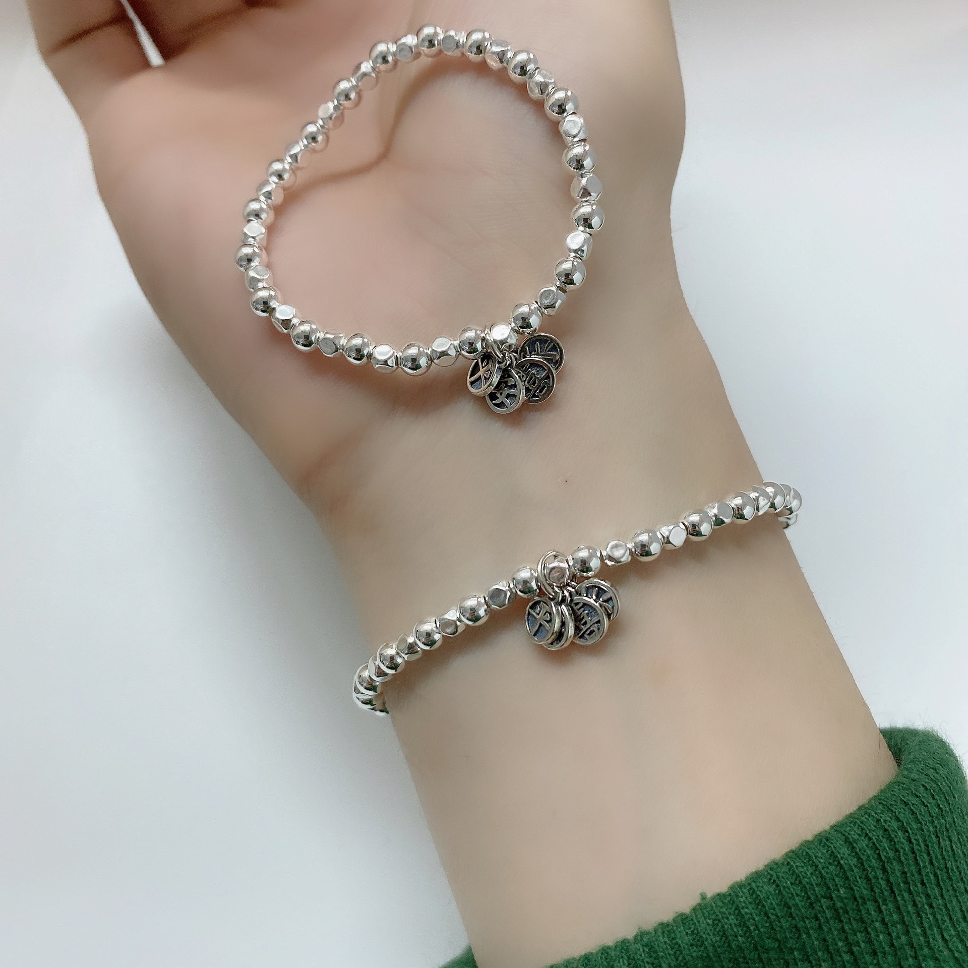 香港正生纯银银饰DIY925纯银简约铃铛平安喜乐手串韩版ins碎银几