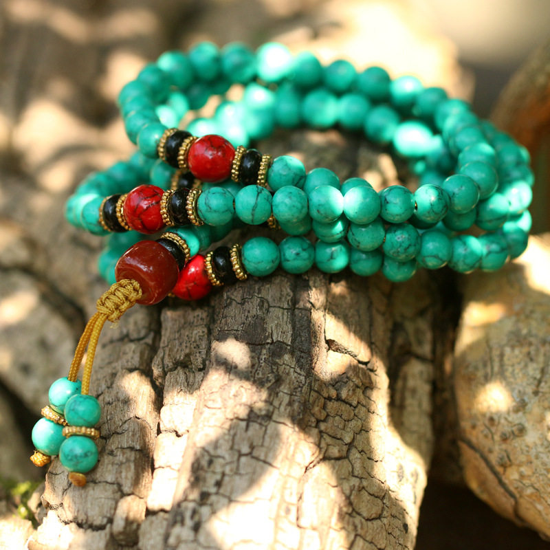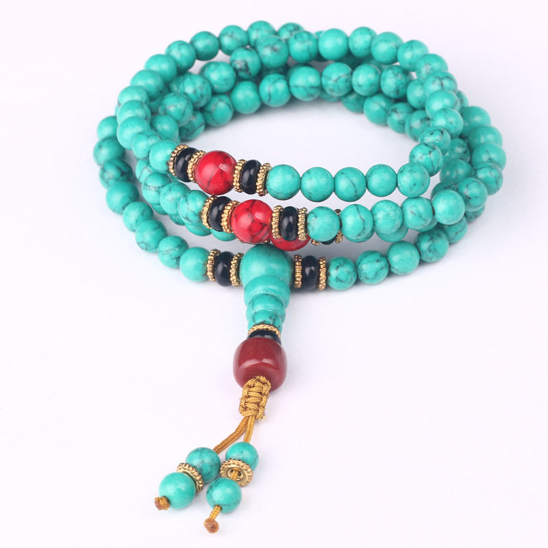 优化绿松石108颗藏式民族风佛珠手链男女情侣多圈念珠手串毛衣链