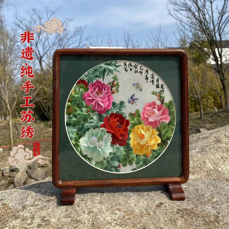 苏绣摆件纯手工双面绣桌面摆台小巧精致重量轻商务礼品出国送老外