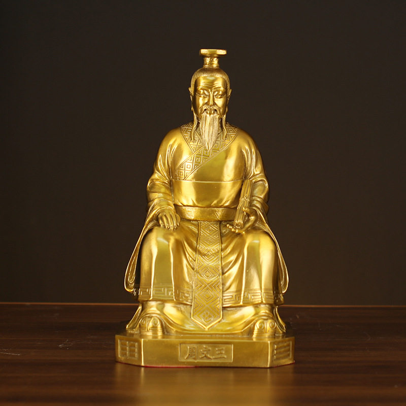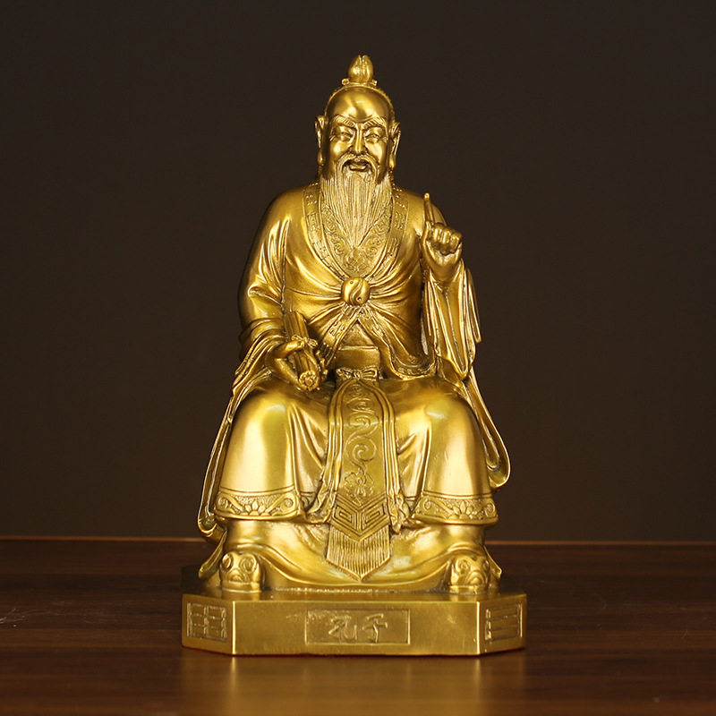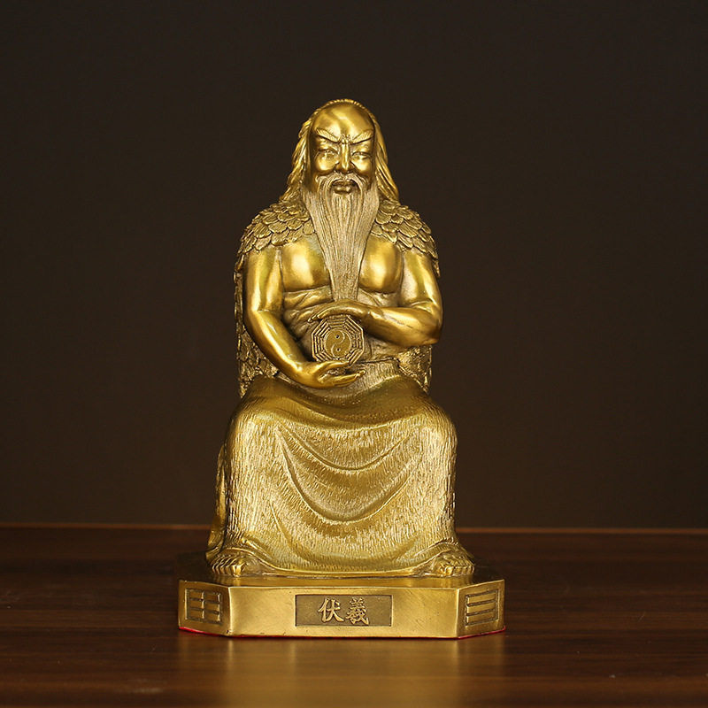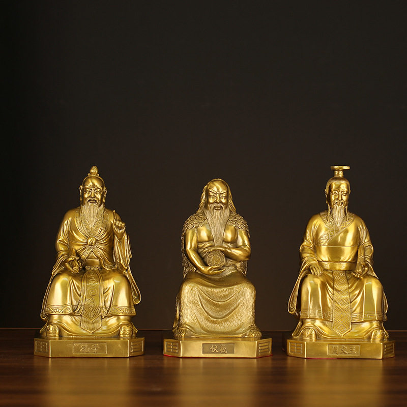 纯铜易经三圣摆件伏羲周文王孔子人物铜像客厅书房办公室桌面装饰