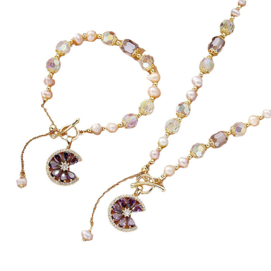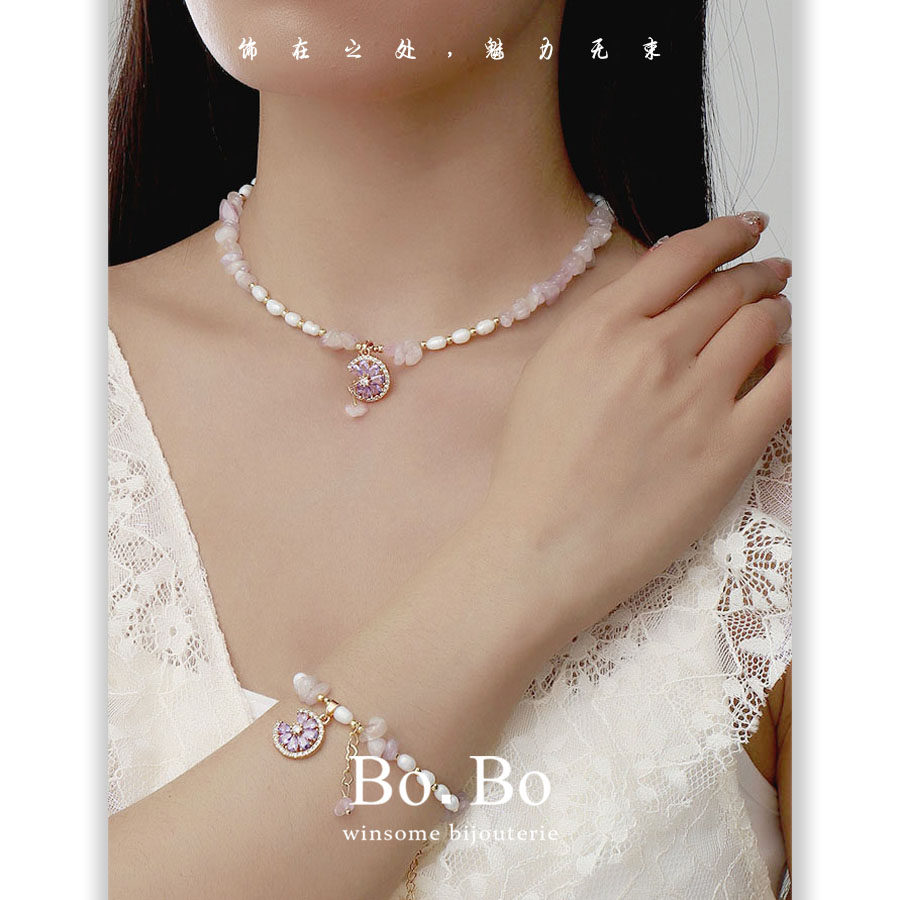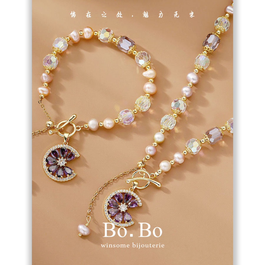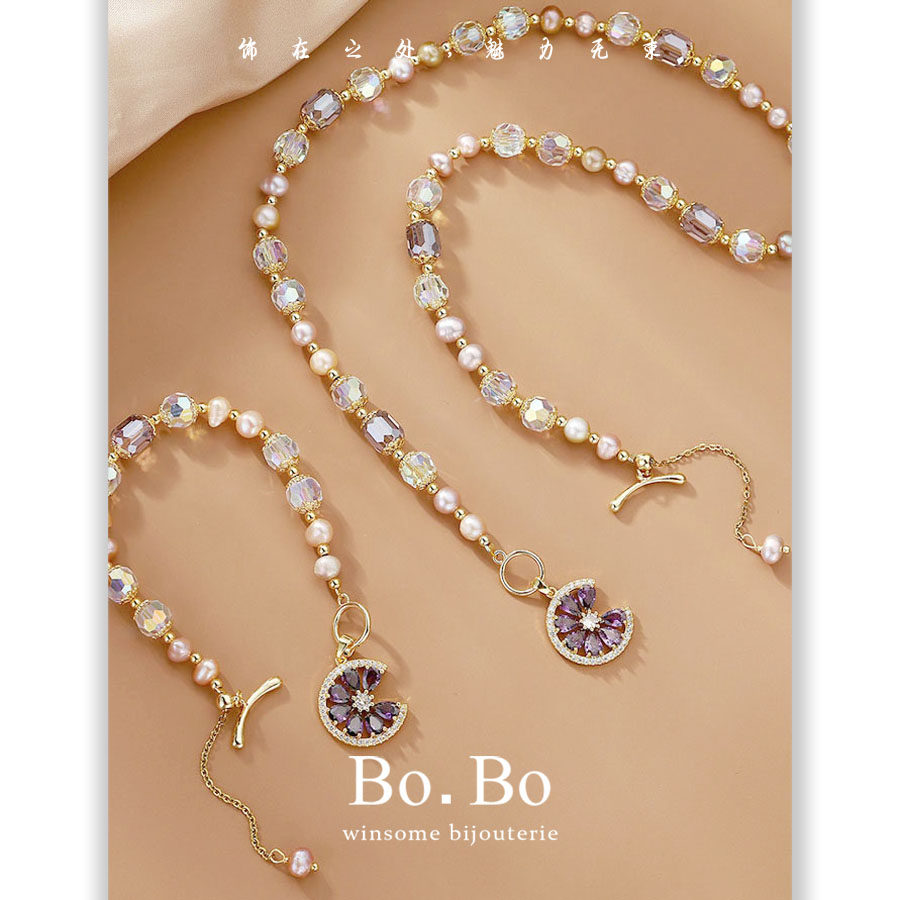 轻奢超仙紫钻颈链彩色淡水珍珠项链女微镶紫色水晶锆石花瓣锁骨链