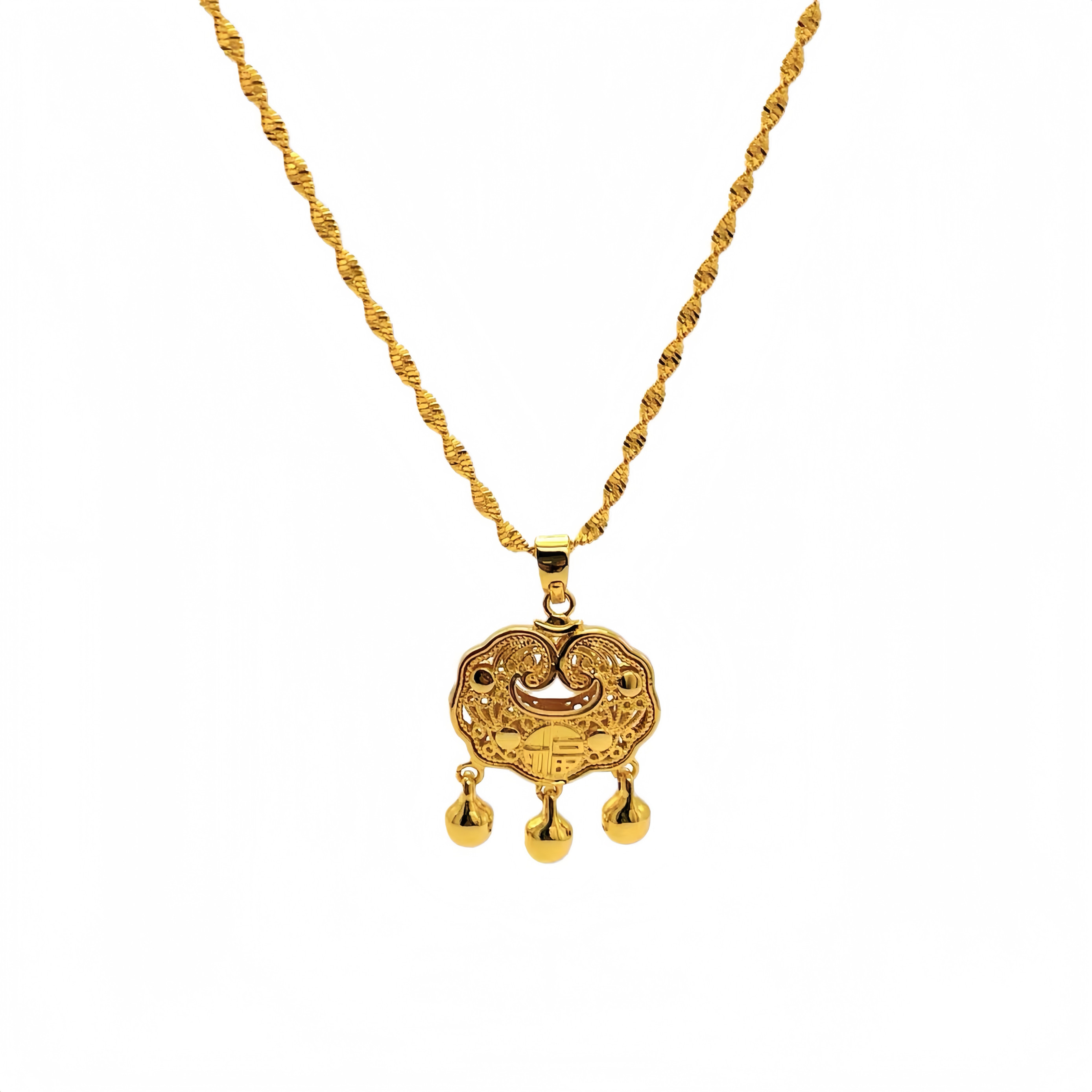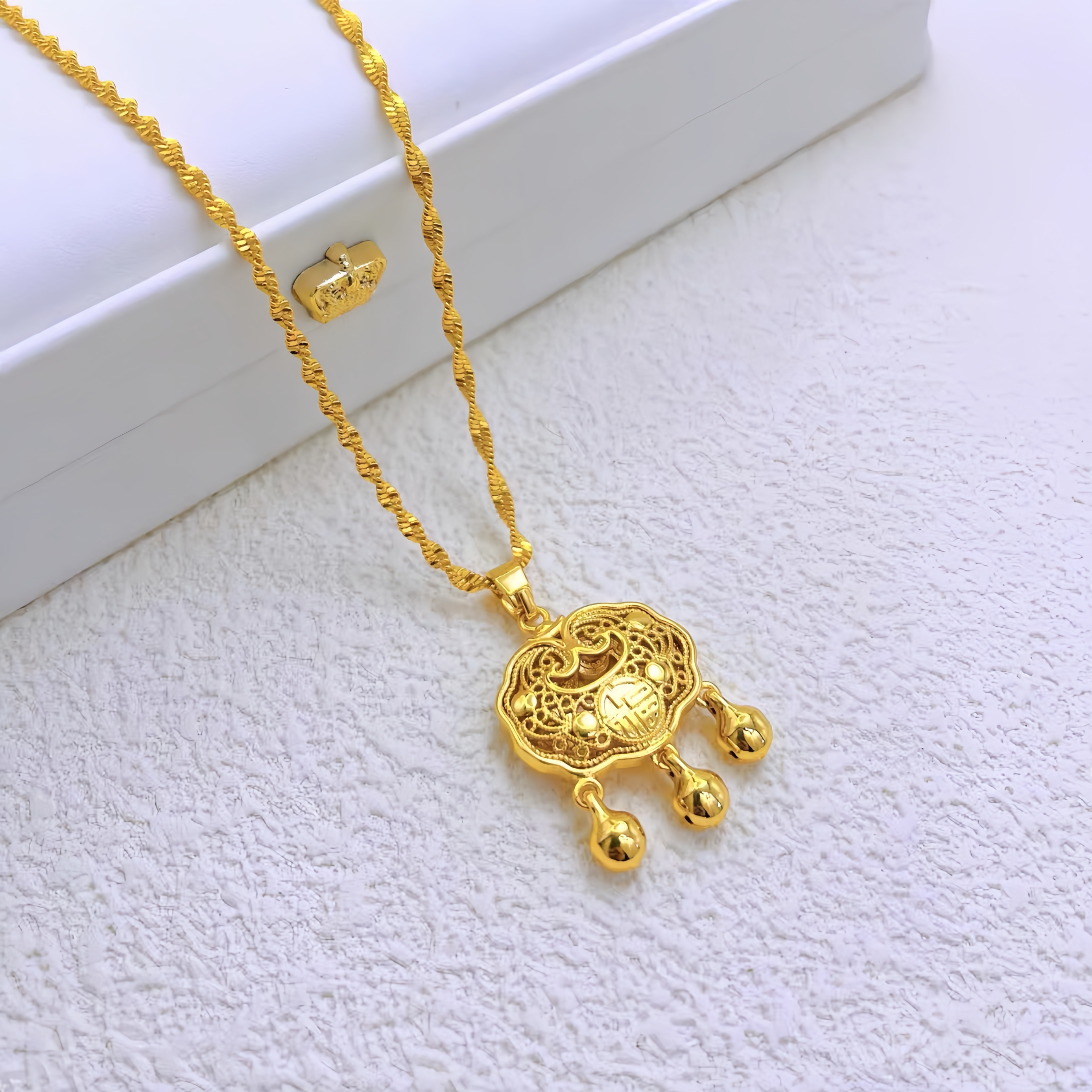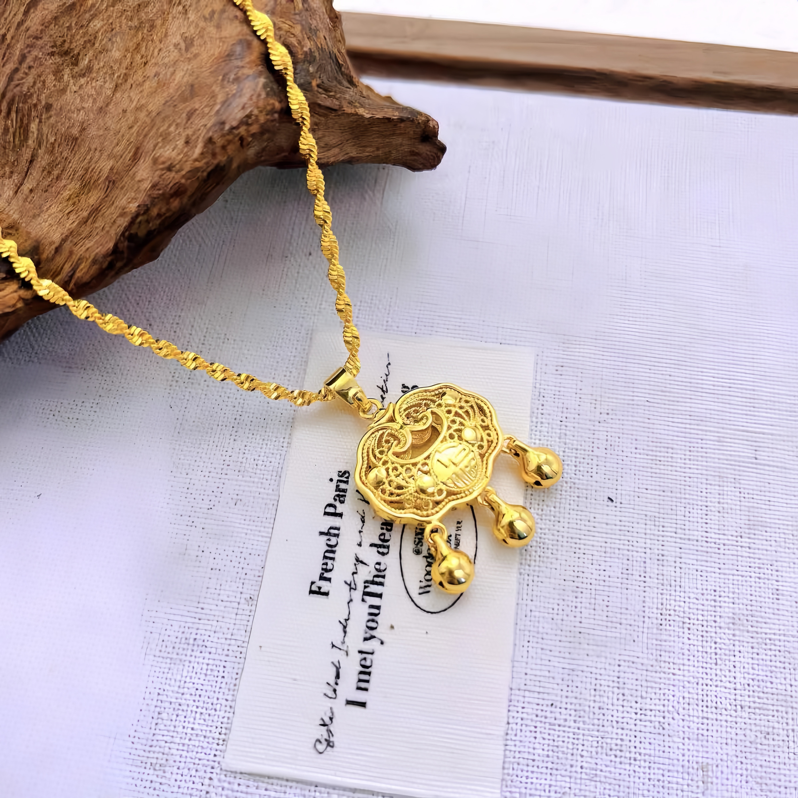 高质量中国风福字平安如意锁钛钢项链女长命锁电镀真金保色民族风