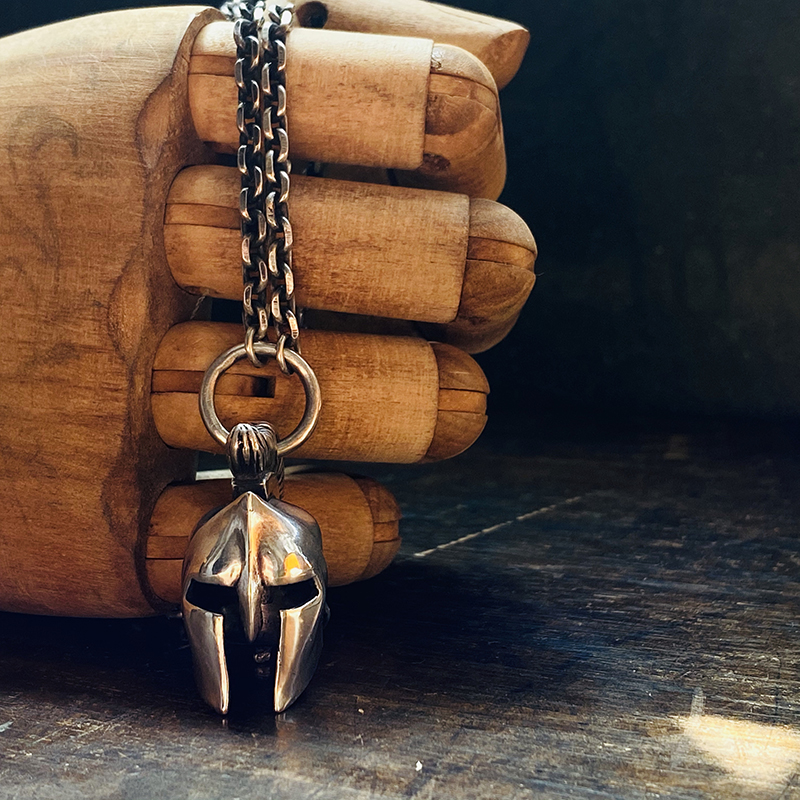 渡鸦工作室原创专属设计战神斯巴达头盔面具吊坠欧美手工925银饰