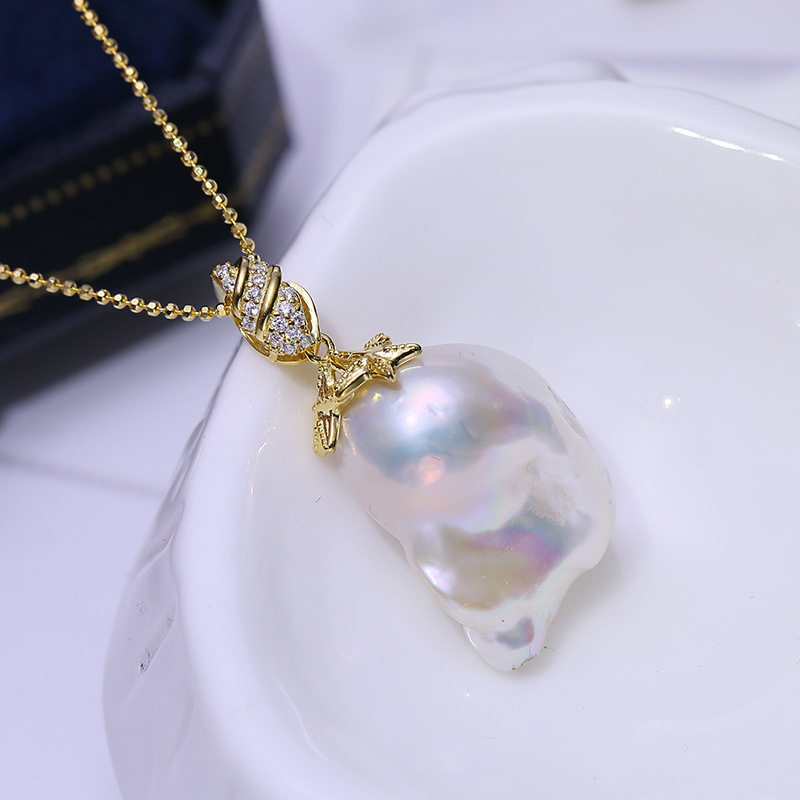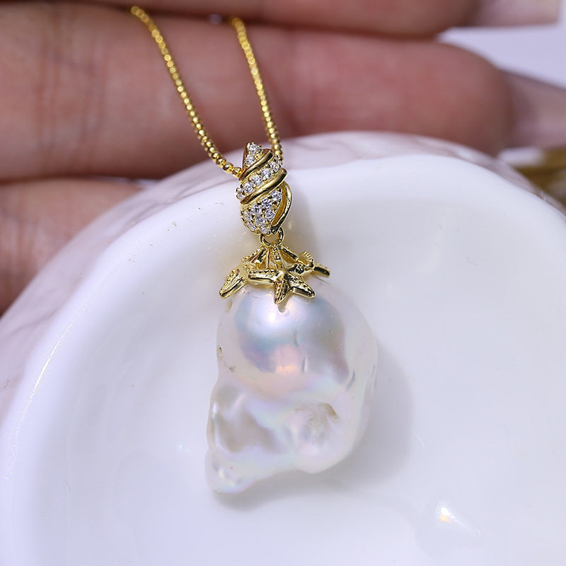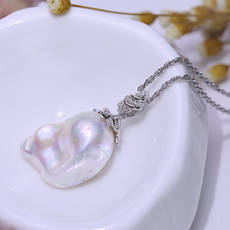 DIY配件 S925纯银珍珠吊坠空托 精美优雅巴洛克项链坠子银托女