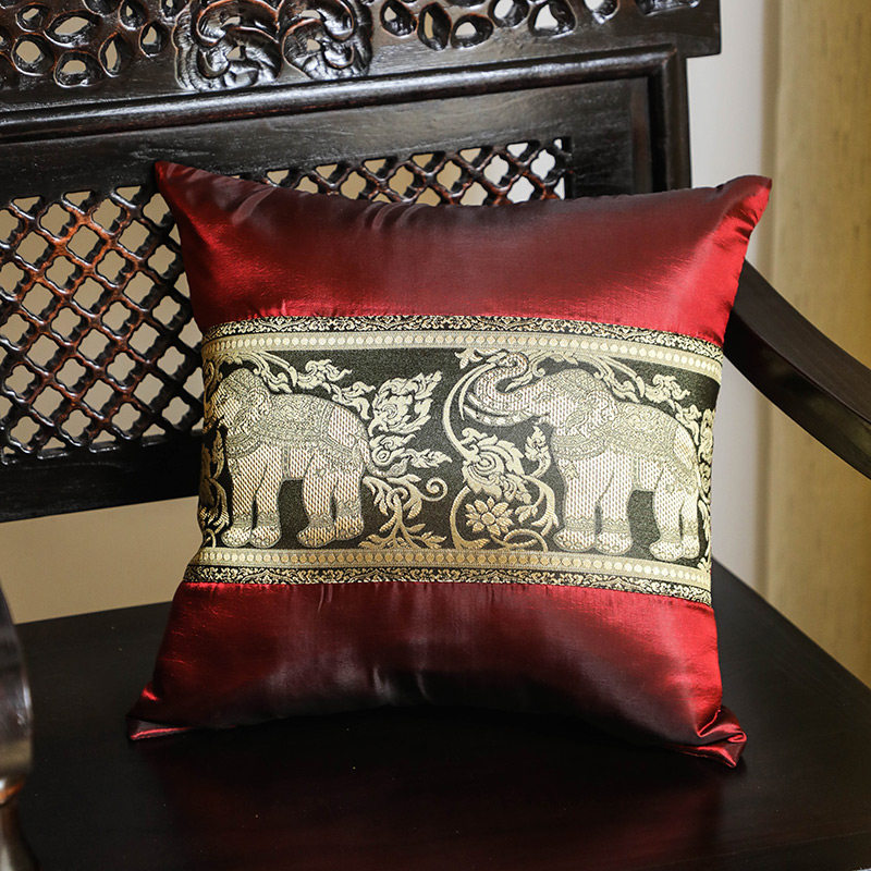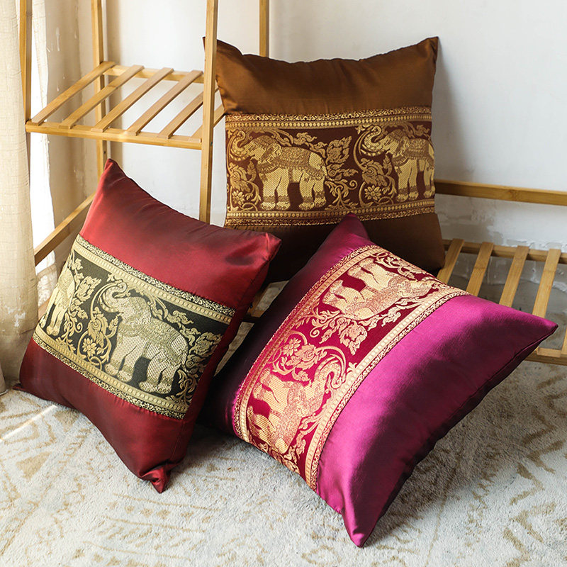 东南亚泰丝绣花抱枕泰式酒店会所沙发靠垫靠枕床头腰靠汽车腰枕套