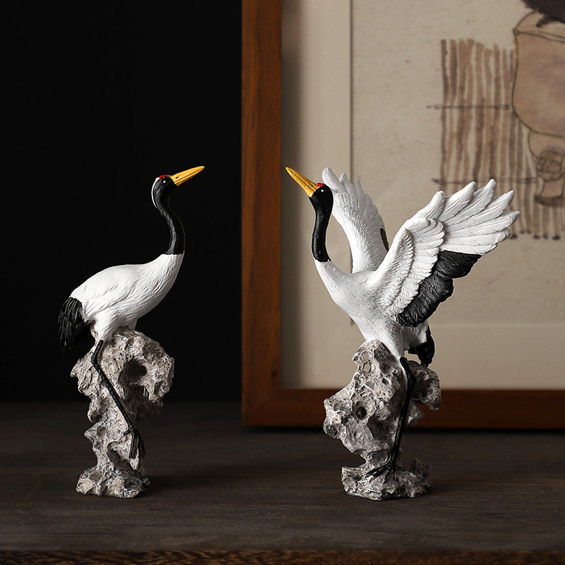 仿真丹顶鹤摆件流水景观鱼缸造景装饰桌面植物盆景设计工艺品摆设