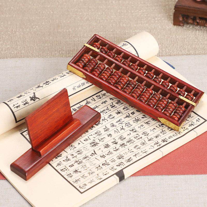 红木老式算盘摆件珠心算红酸枝实木陪嫁小孩抓周乔迁新居开业礼品