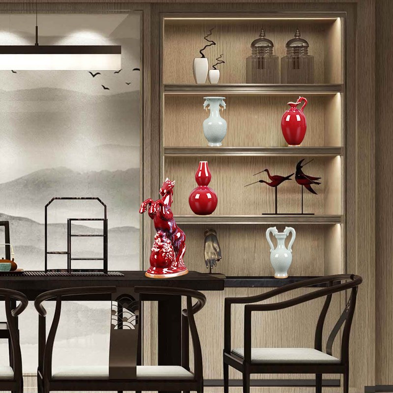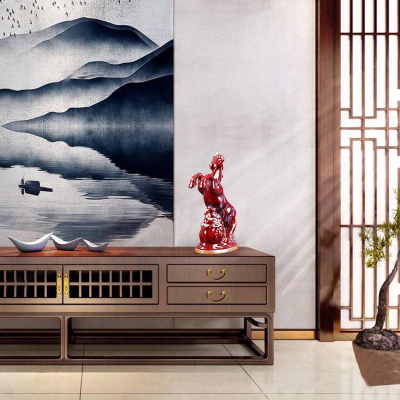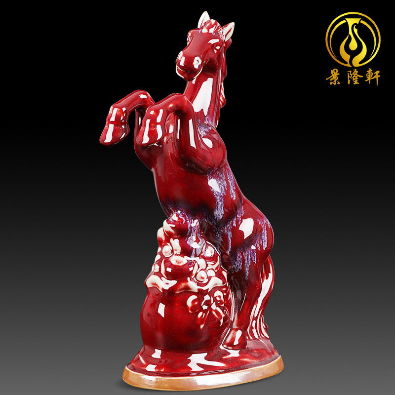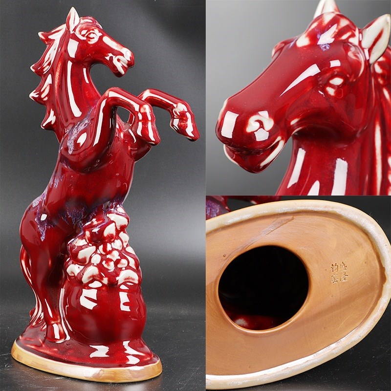 陶瓷器花瓶马到成功窑变红色钧瓷马办公室家居客厅装饰工艺品摆件