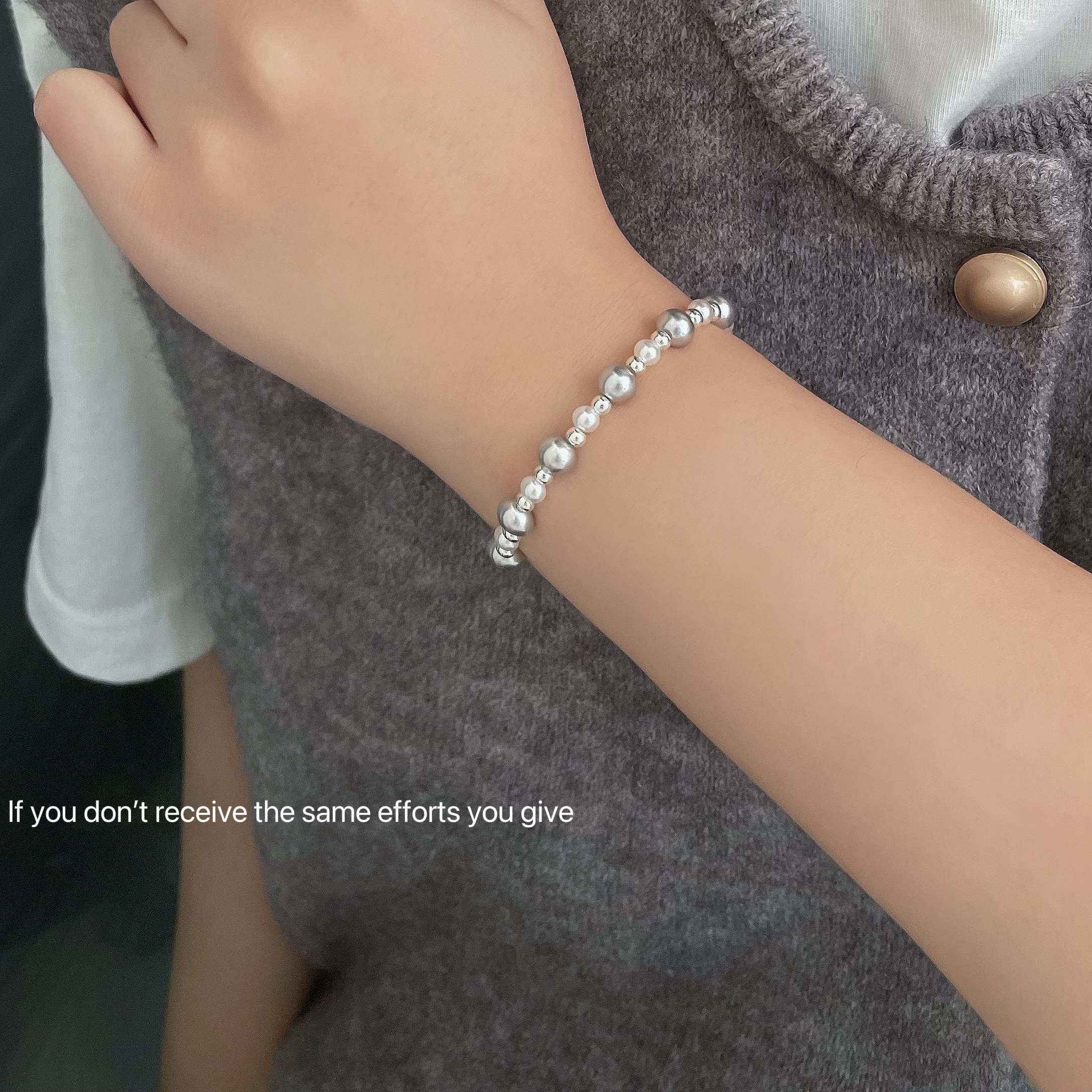S925纯银施家真多麻灰色间隔银珠手链小众设计百搭ins气质高级