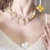 「蜂蜜罐头」奶黄色串珠蝴蝶结项链女小众高级显白甜美锁骨链配饰
