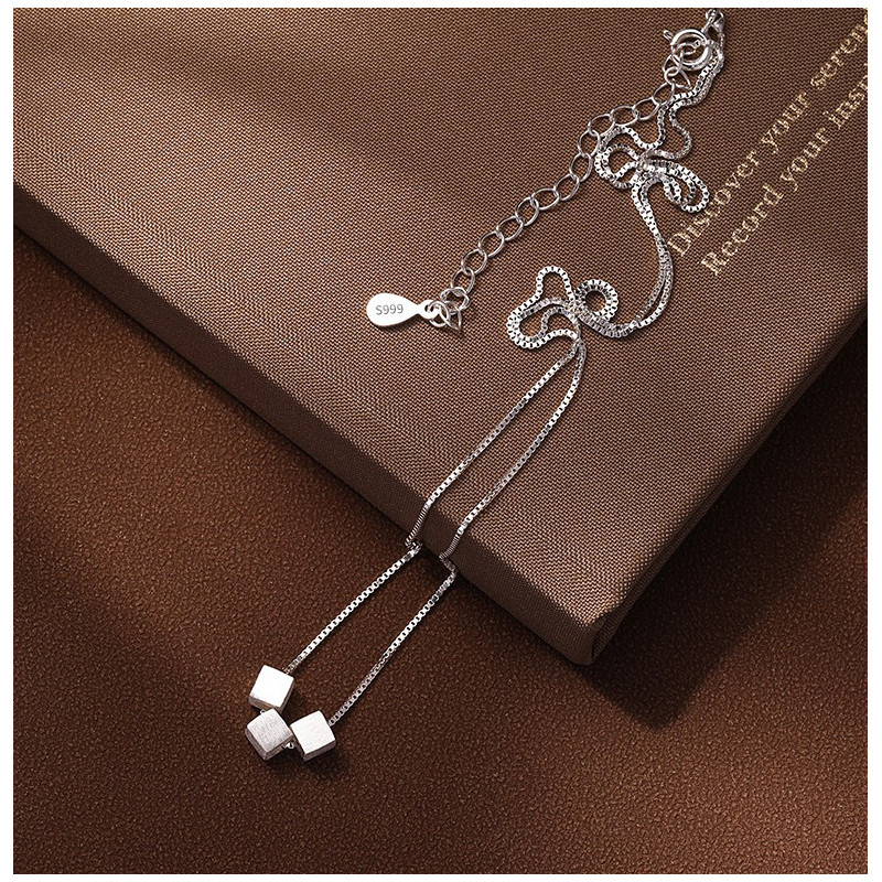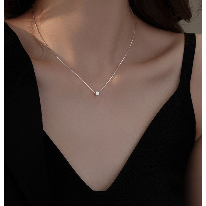 s999纯银拉丝小方糖项链女轻奢极简小众高级感几何方块锁骨链项饰