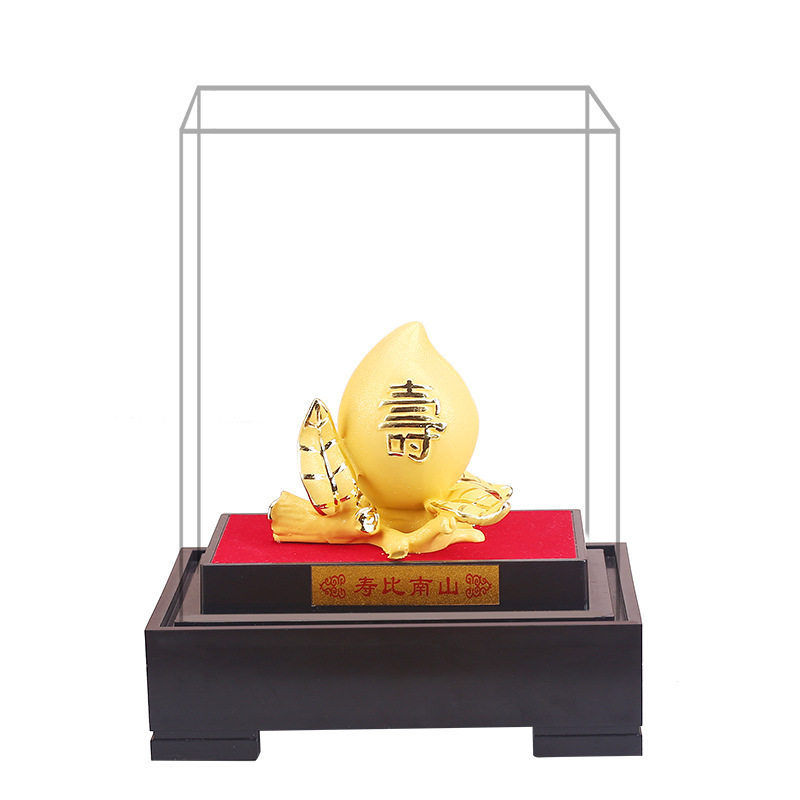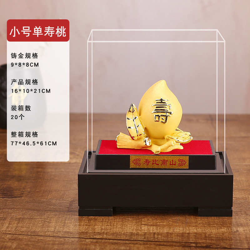 绒沙金摆件福寿双桃寿桃送长辈老人生日礼物创意家居装饰工艺品