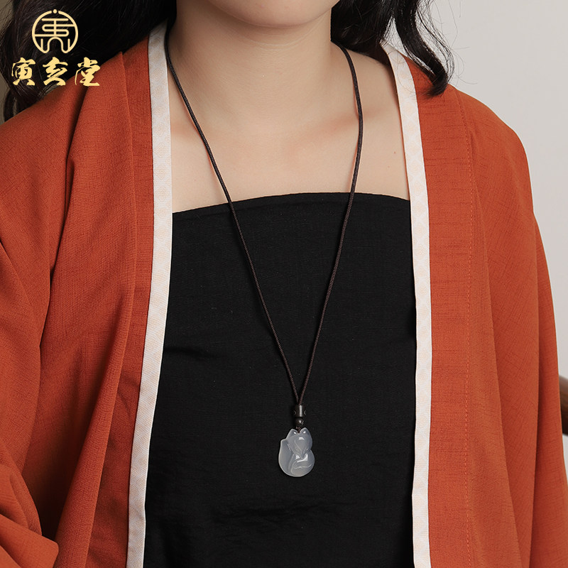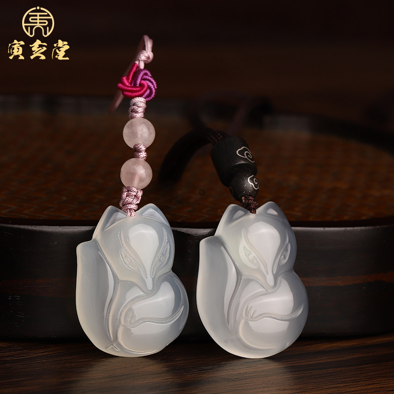 天然玉髓粉色狐狸挂件白色吊坠手机链包挂汽车钥匙扣吉祥物装饰品