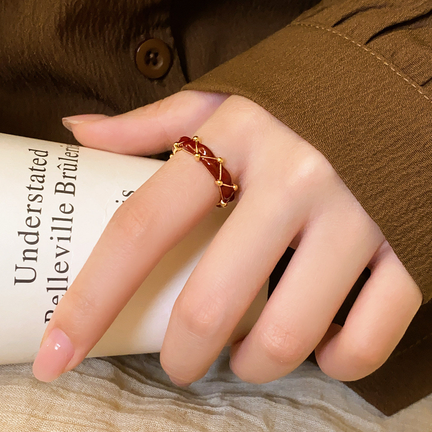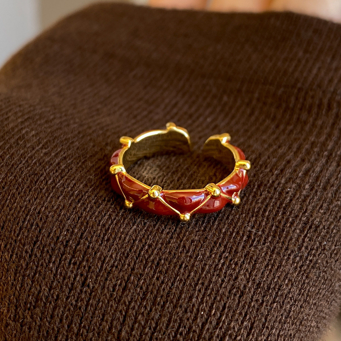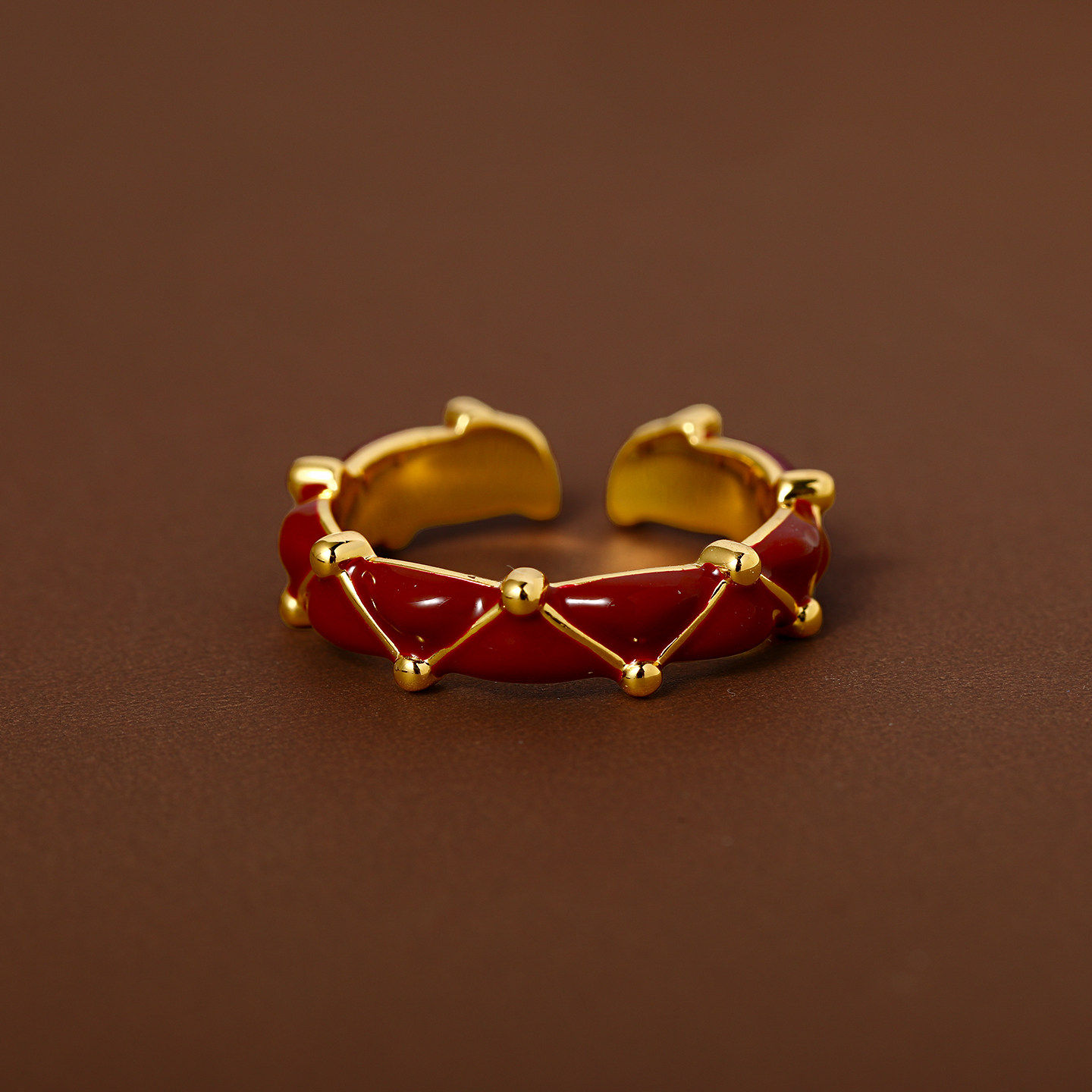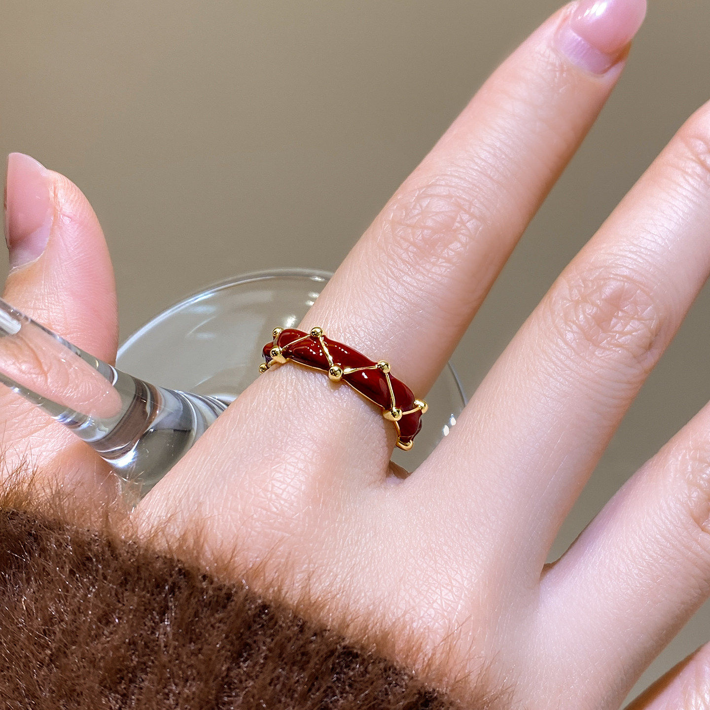 红色滴釉开口戒指女2026新款轻奢小众高级感气质食指戒本命年指环