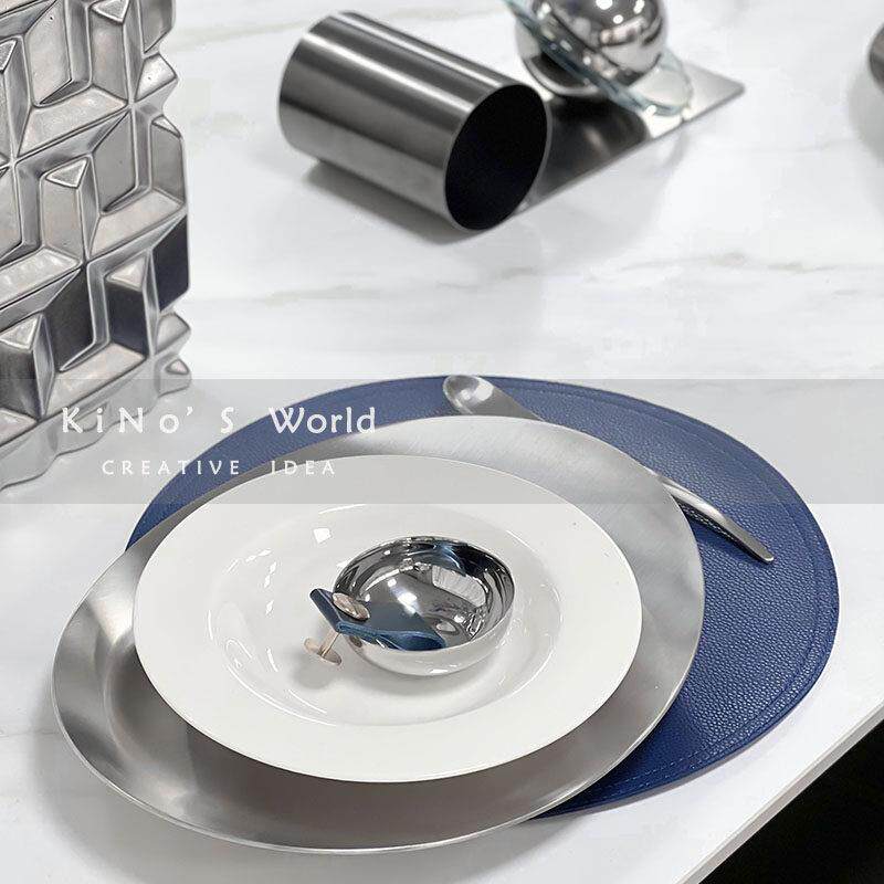 现代简约餐具摆件蓝色系餐厅软装饰品餐盘花瓶样板房展厅餐桌摆台