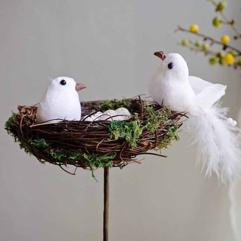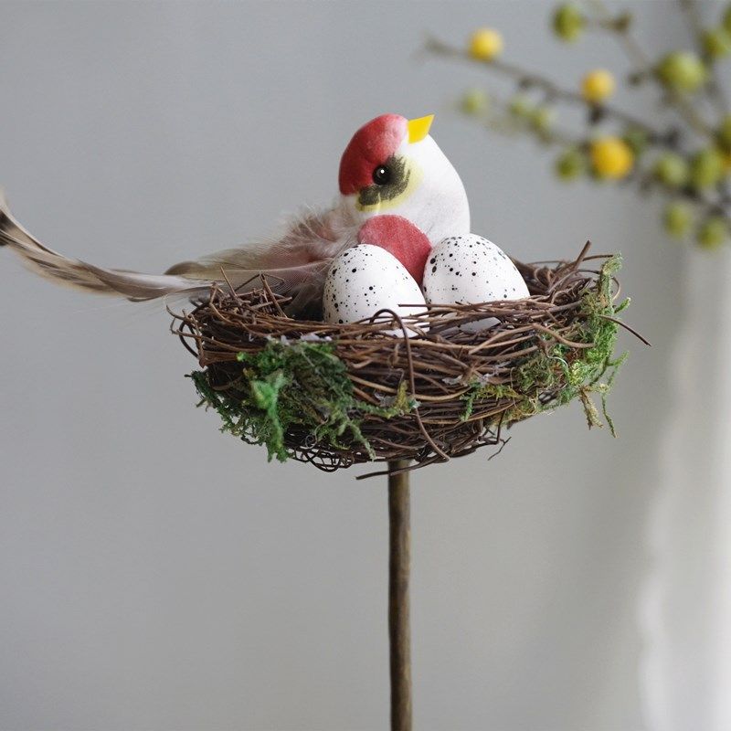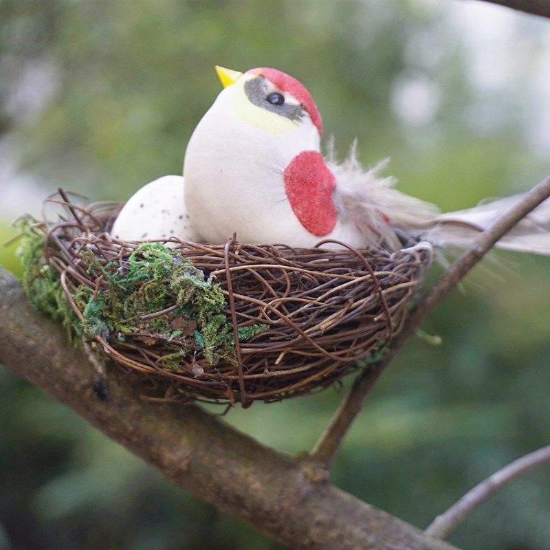 田园森系天然手工制小鸟窝鸟巢装饰摆件麻雀鸟蛋羽毛庭院花园布置