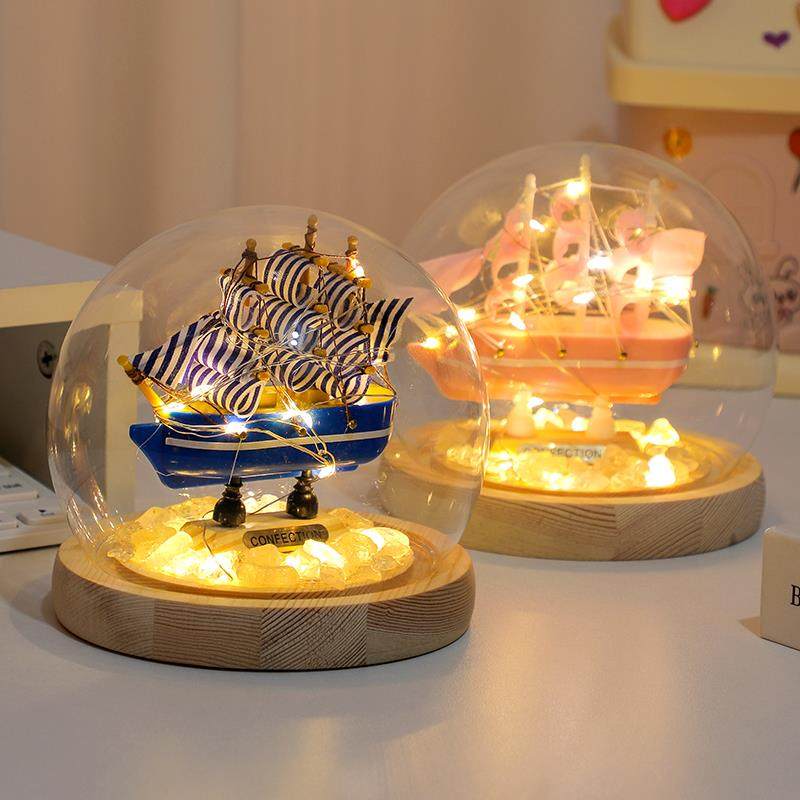一帆风顺帆船小夜灯桌面小摆件手工diy材料包卧室女孩房间装饰品