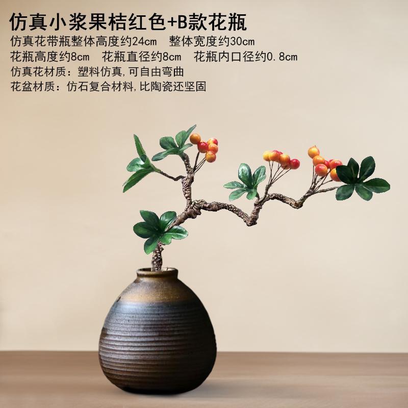 中式彷真绿色植物屏风摆件盆景禅意客厅装饰品玄关办公室花瓶彷真