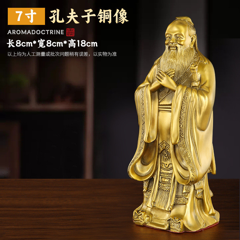 文创礼品黄铜孔子像孔夫子办公室家居用雕像桌面摆件金属工艺品
