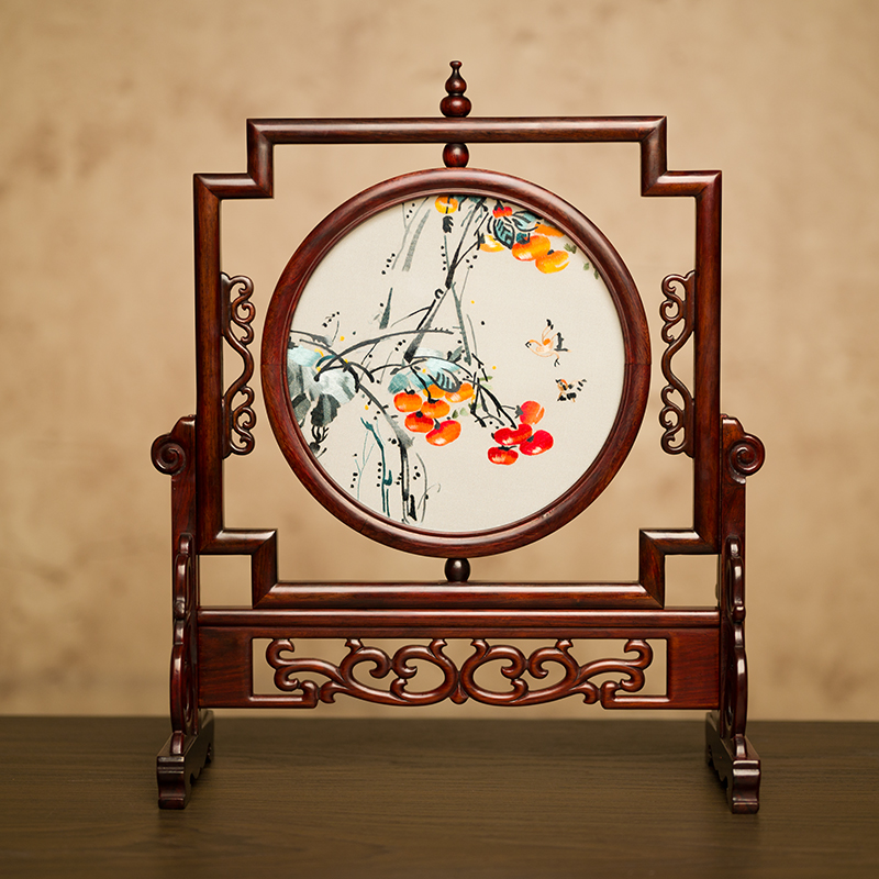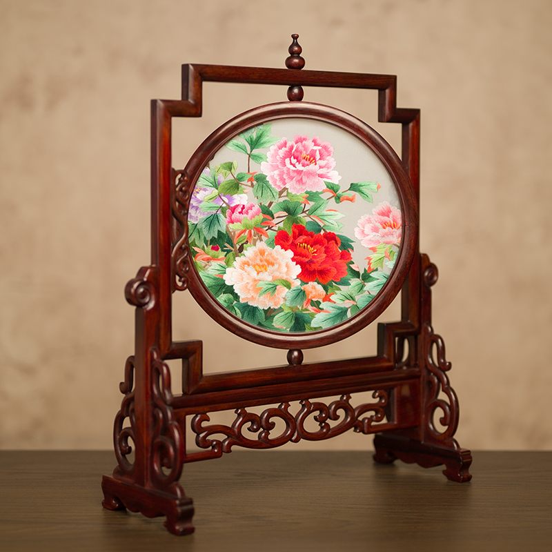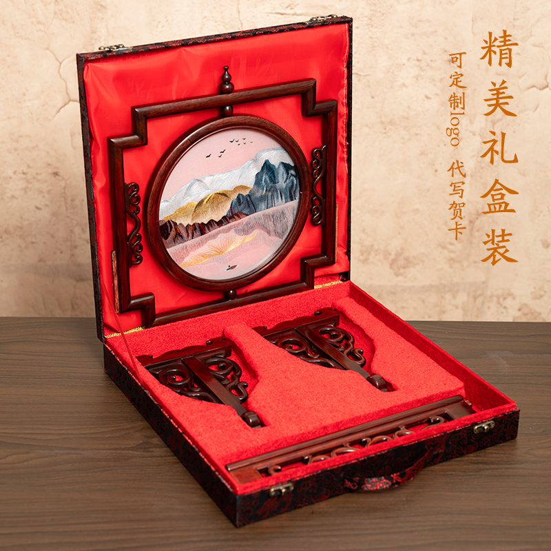 刺绣摆件中e式复古苏绣摆台手工双面绣桌面台屏装饰礼品送领导长