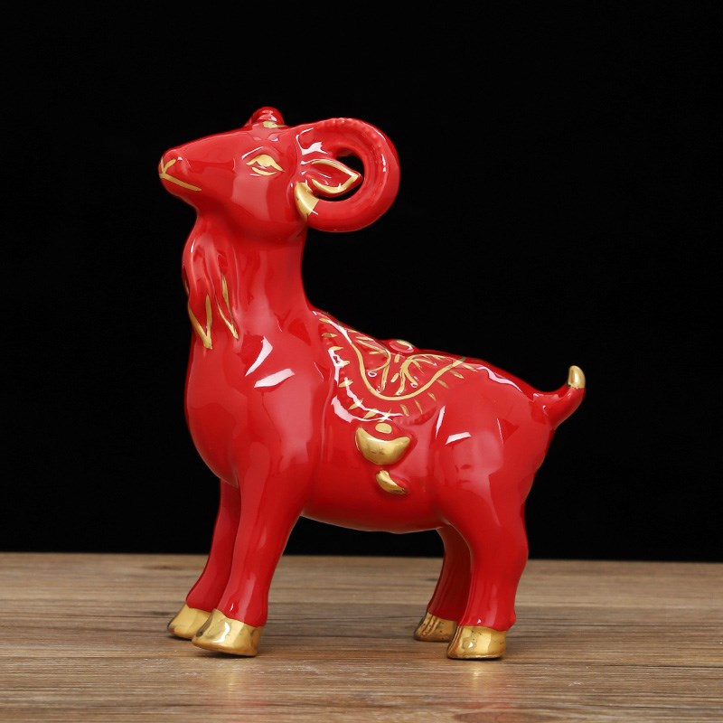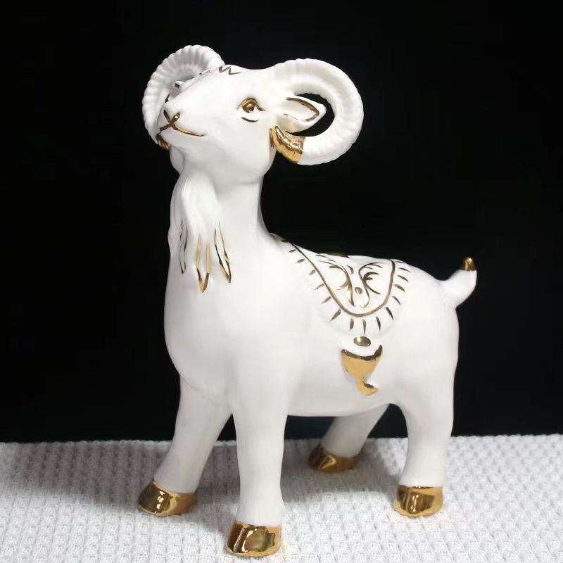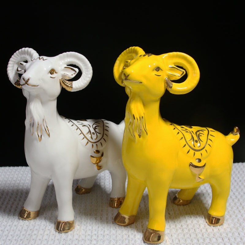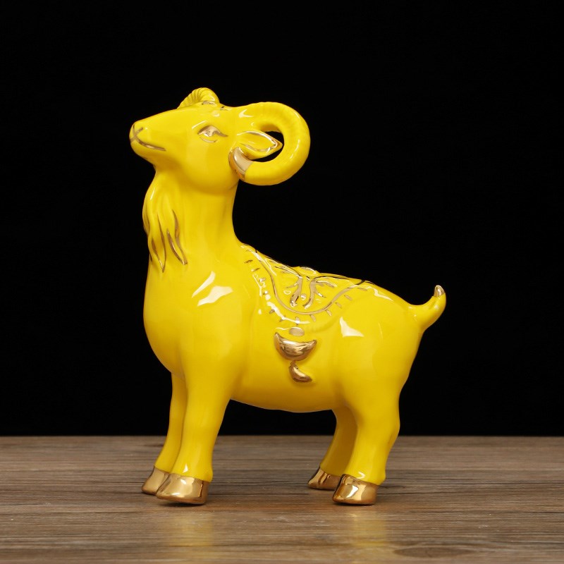 黄色陶瓷a羊摆件山羊招财风水补角十二生肖三阳开泰客厅家居工艺