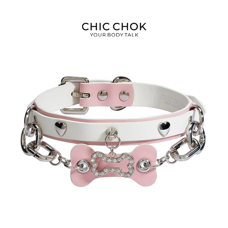 CHICCHOK原创项圈女m高级感choker粉白小狗颈带真皮颈环颈圈M定制