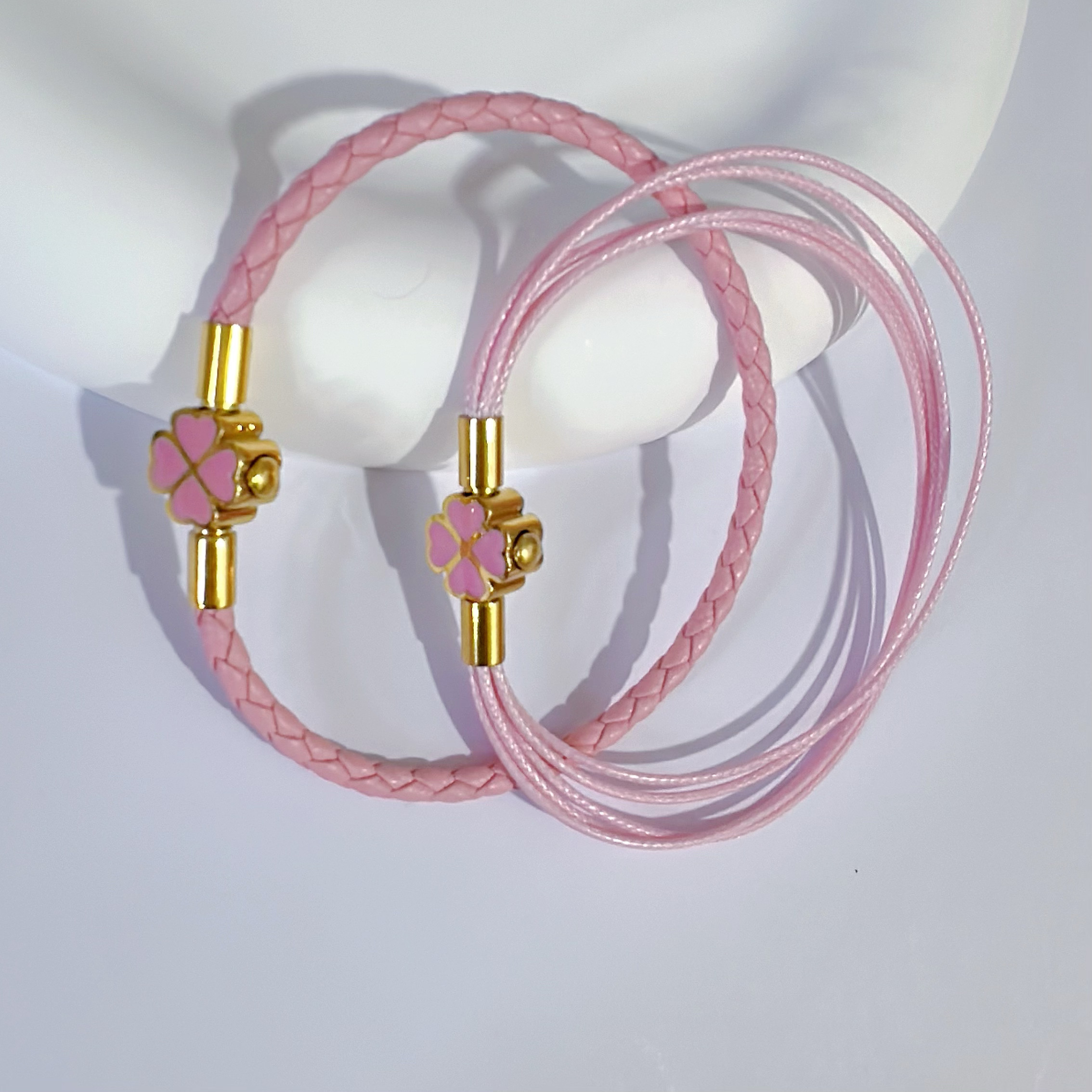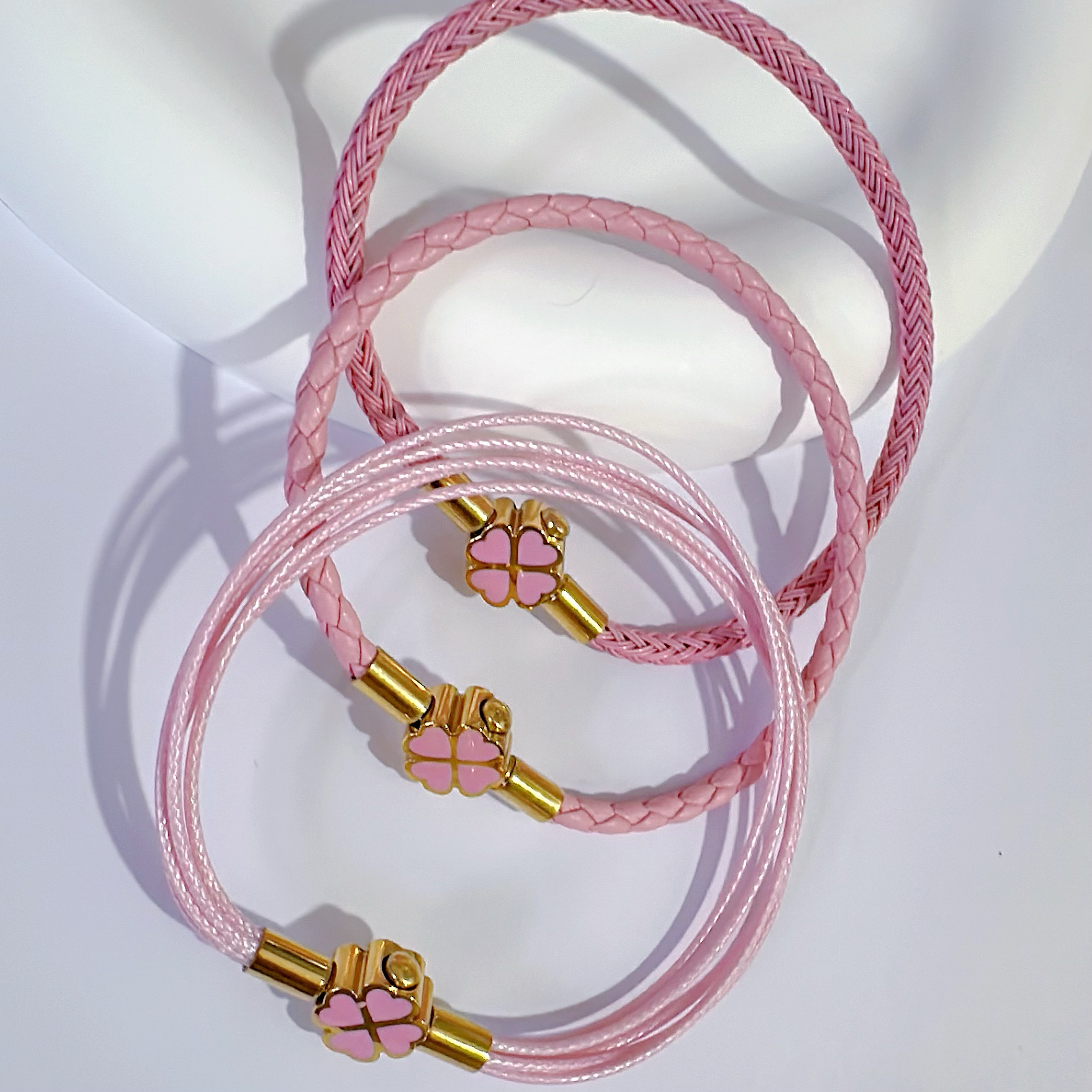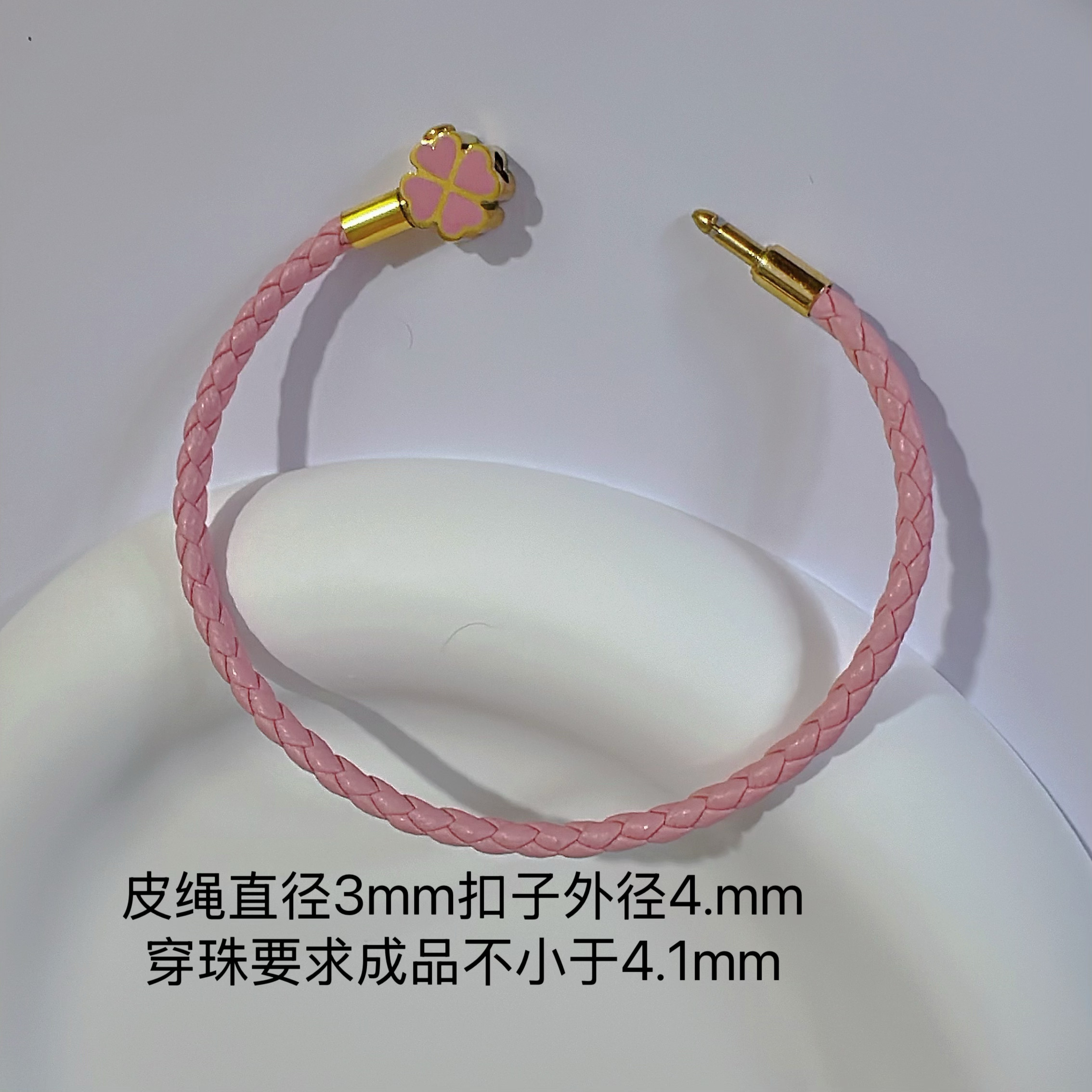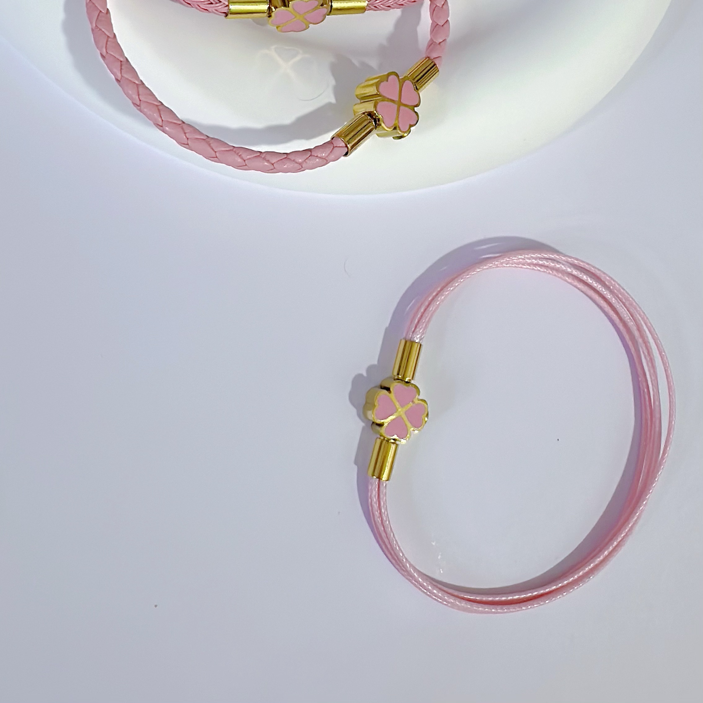 2025年新款原创设计手链女生高端金扣百搭钢丝绳四叶草粉色女礼物