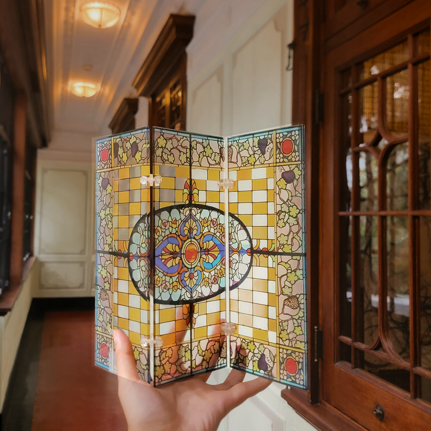 Funlife《City Walk》仿荣宅建筑彩窗玻璃亚克力桌面屏风摆件装饰
