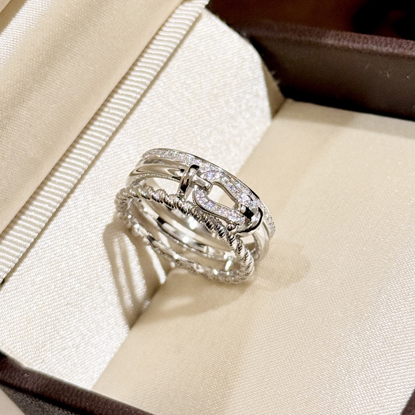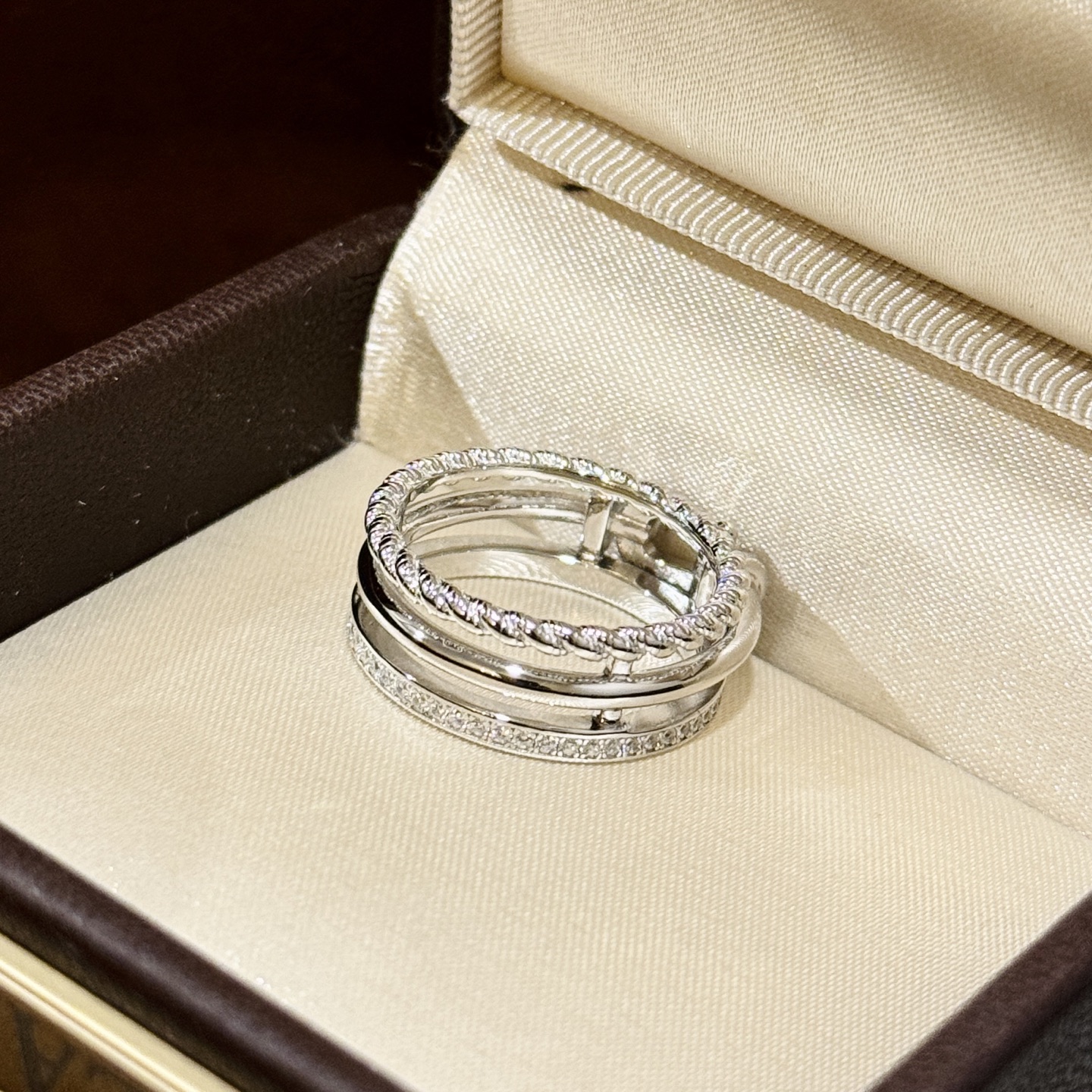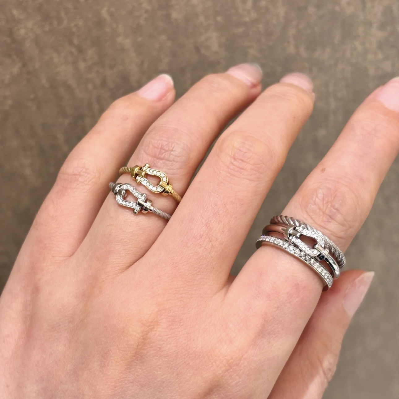 意大利工艺马蹄扣戒指三环麻花通体925纯银女戒轻奢小众设计感