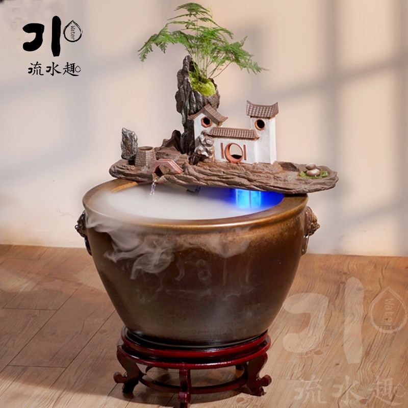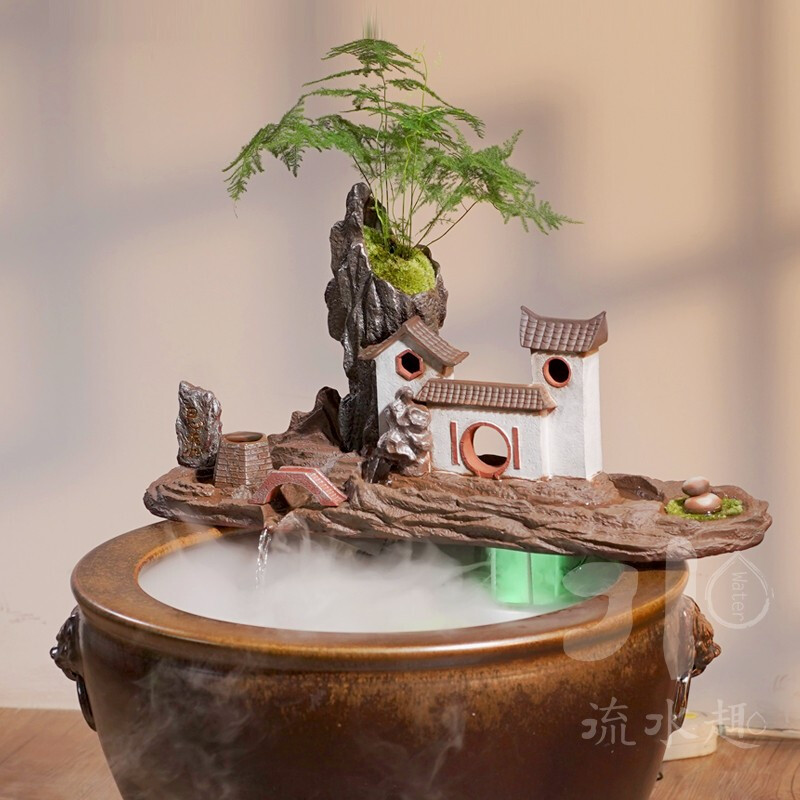 流水趣 陶瓷创意流水器造水景假山石槽鱼缸循环摆件过滤装饰