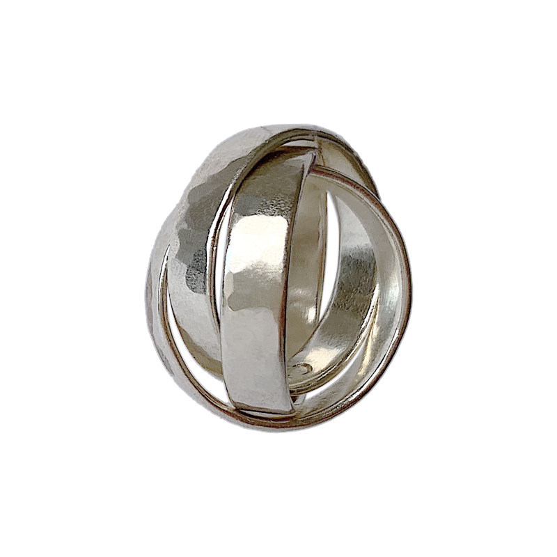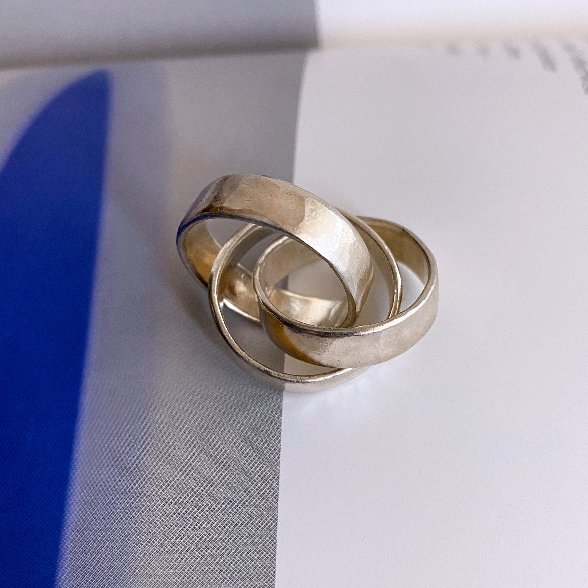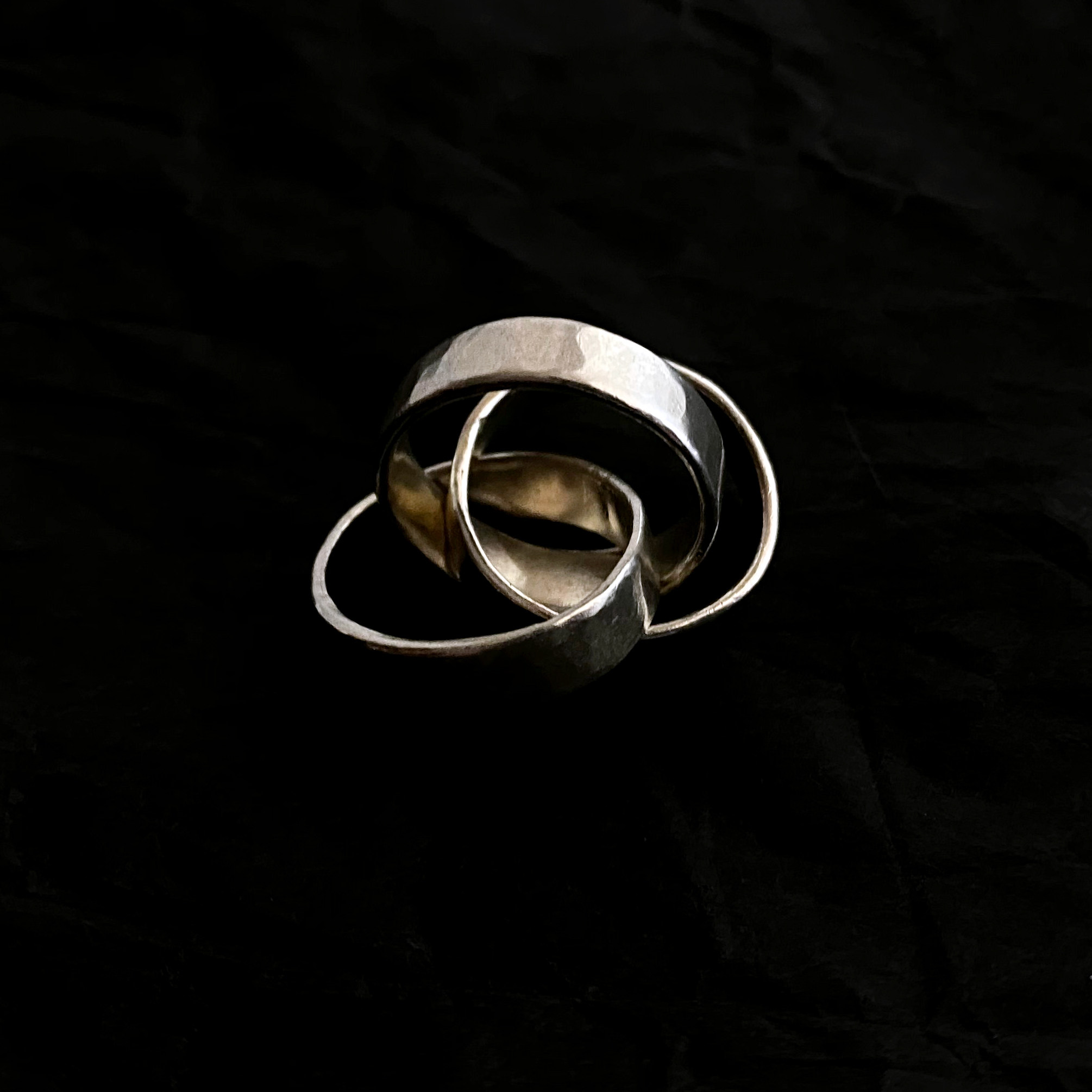 从不睡觉 简约三层多环组合锤击设计感925纯银叠戴交叉三环戒指