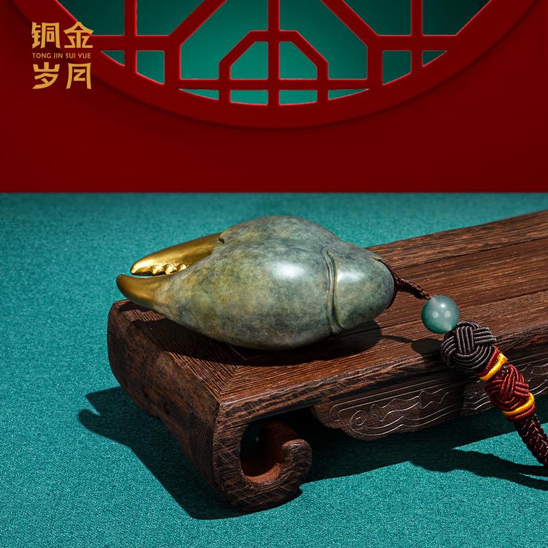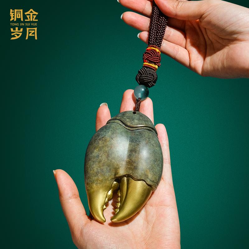 《手中有钱》铜金岁月黄铜螃蟹钳手把件挂饰新中式工艺礼品摆饰桌