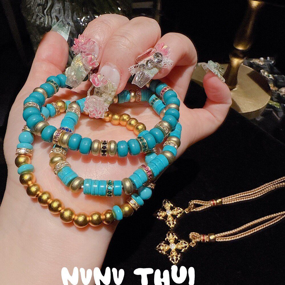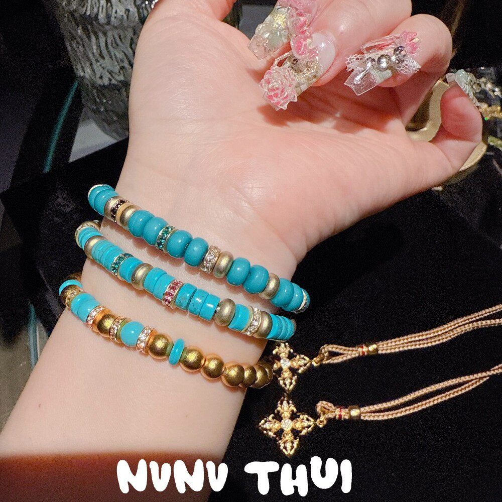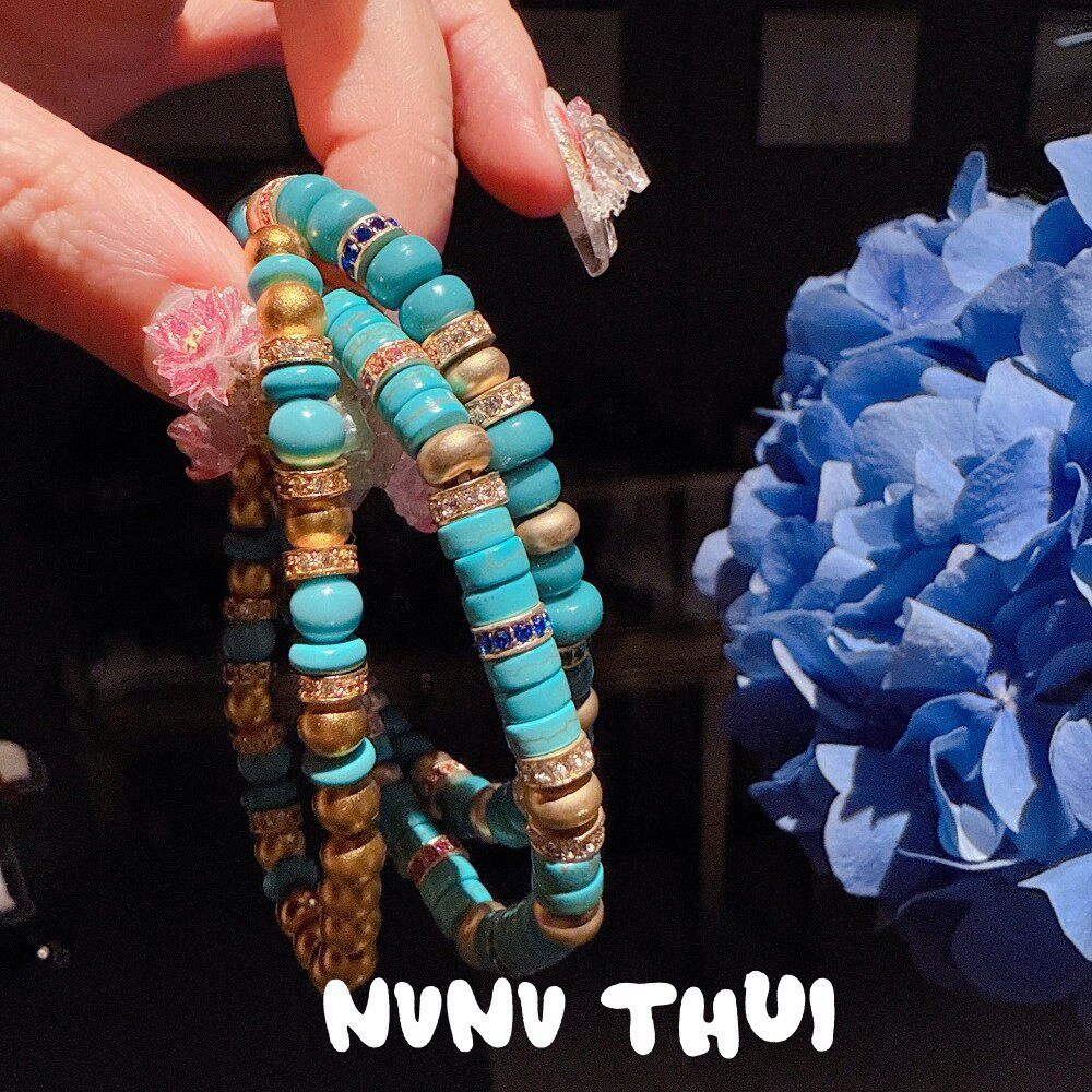 珠宝 绿松手串手链 鎏金叠梦 海纹石蓝松小蛮腰手串叠戴 蓝色花神