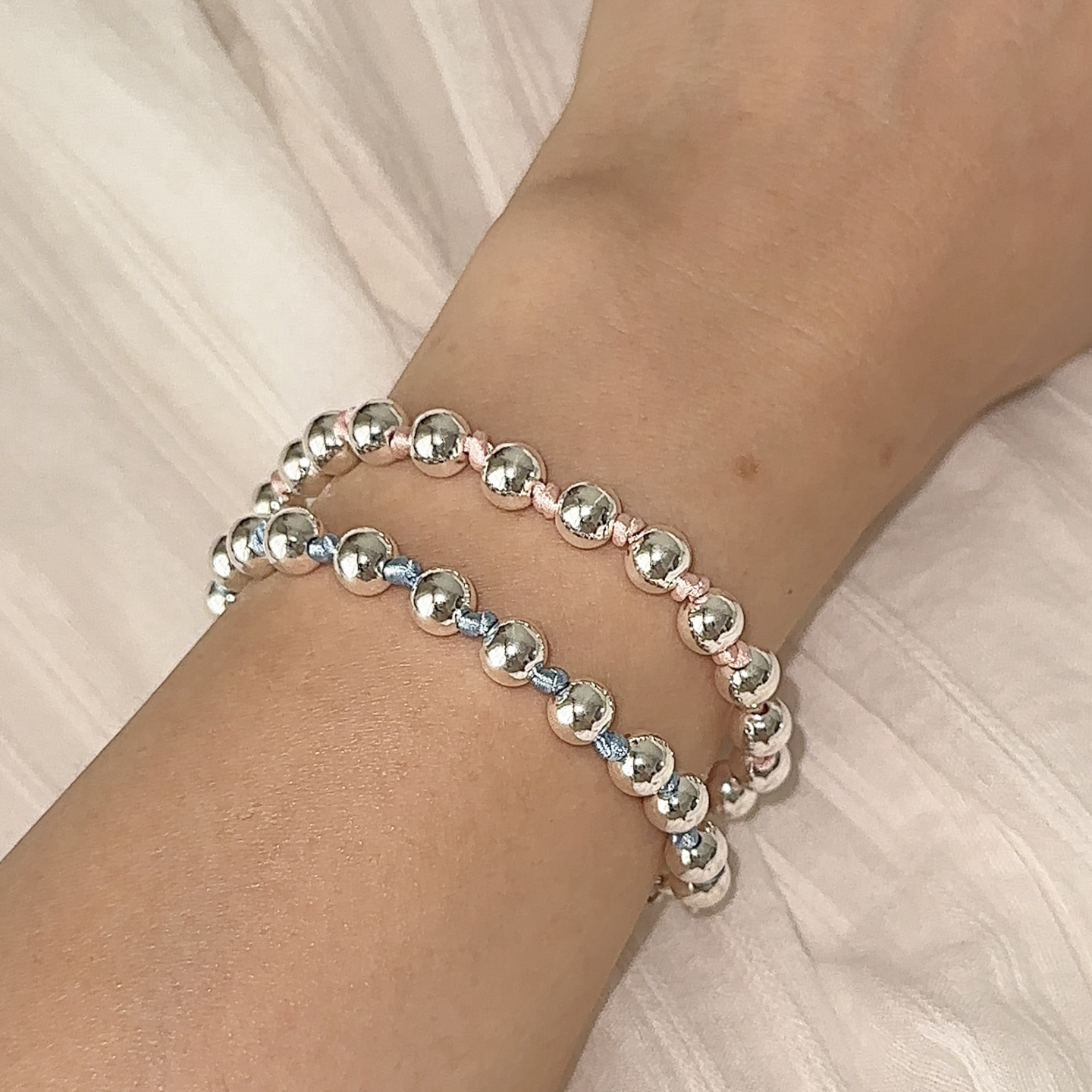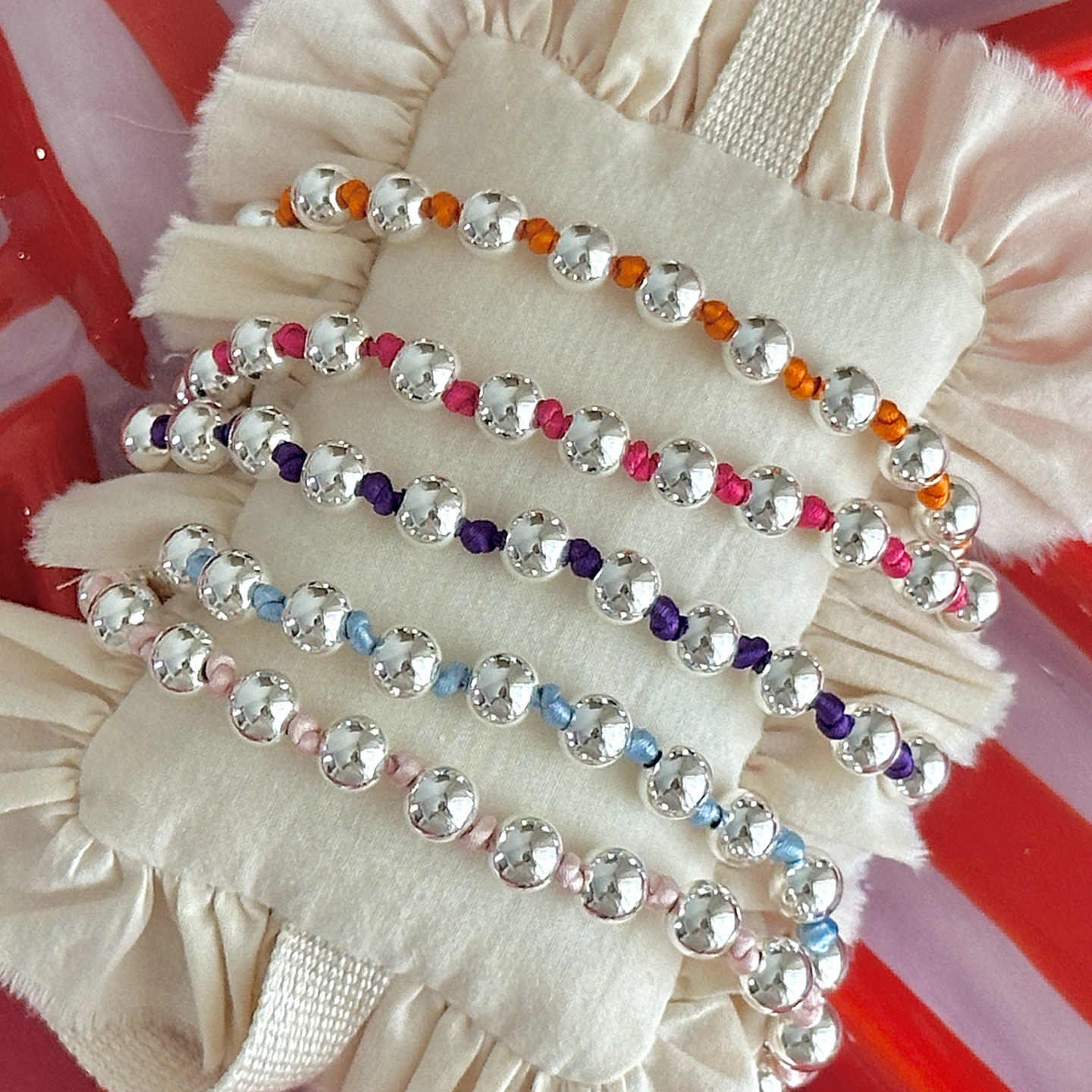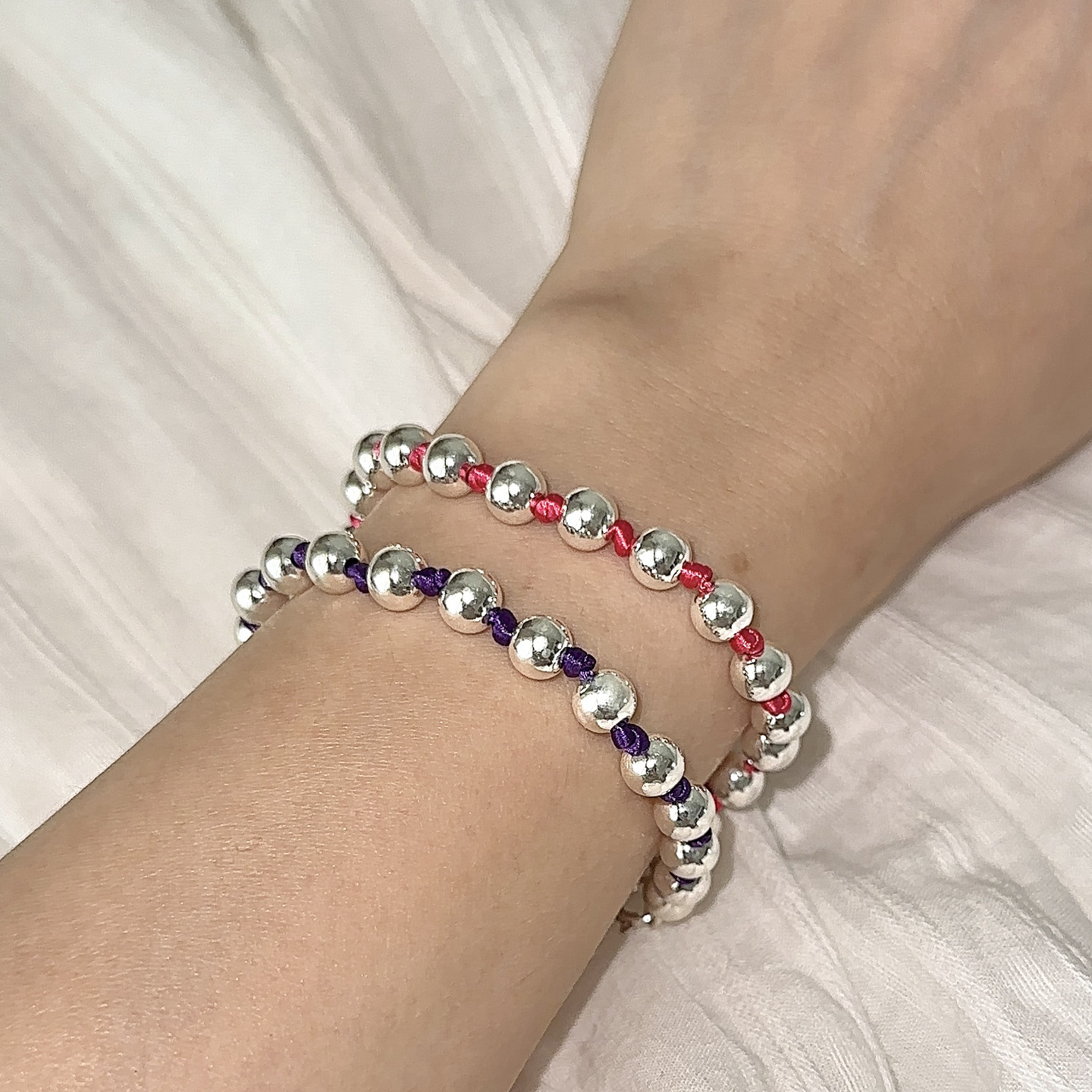 【前50件福利价】【新品】925通体纯银灯泡手链珠珠圆珠彩绳手绳