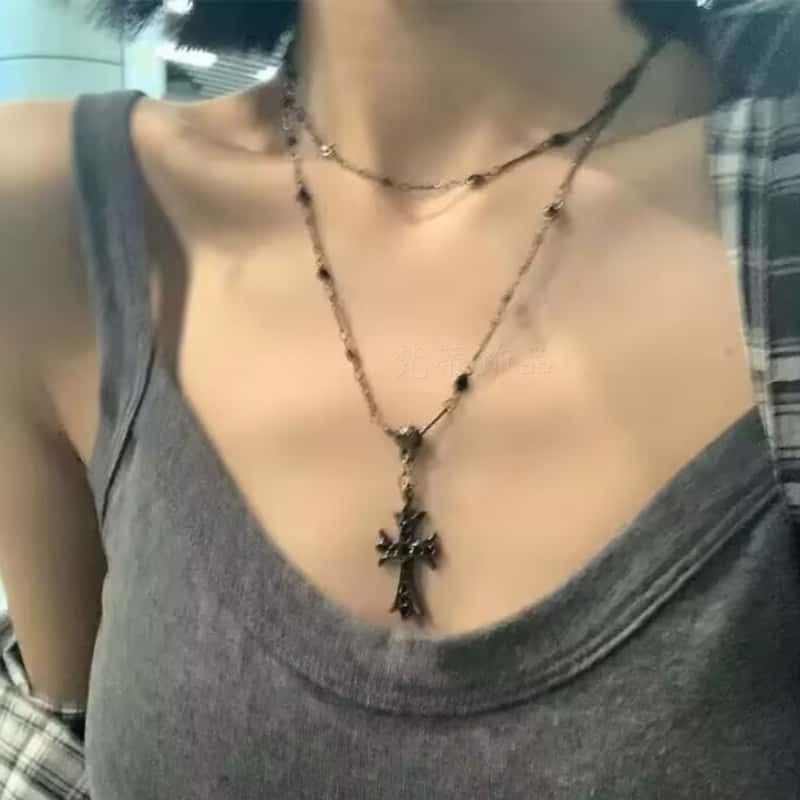高级感绿色十字架项链长款吊坠2025新款个性设计感叠戴锁骨链颈链